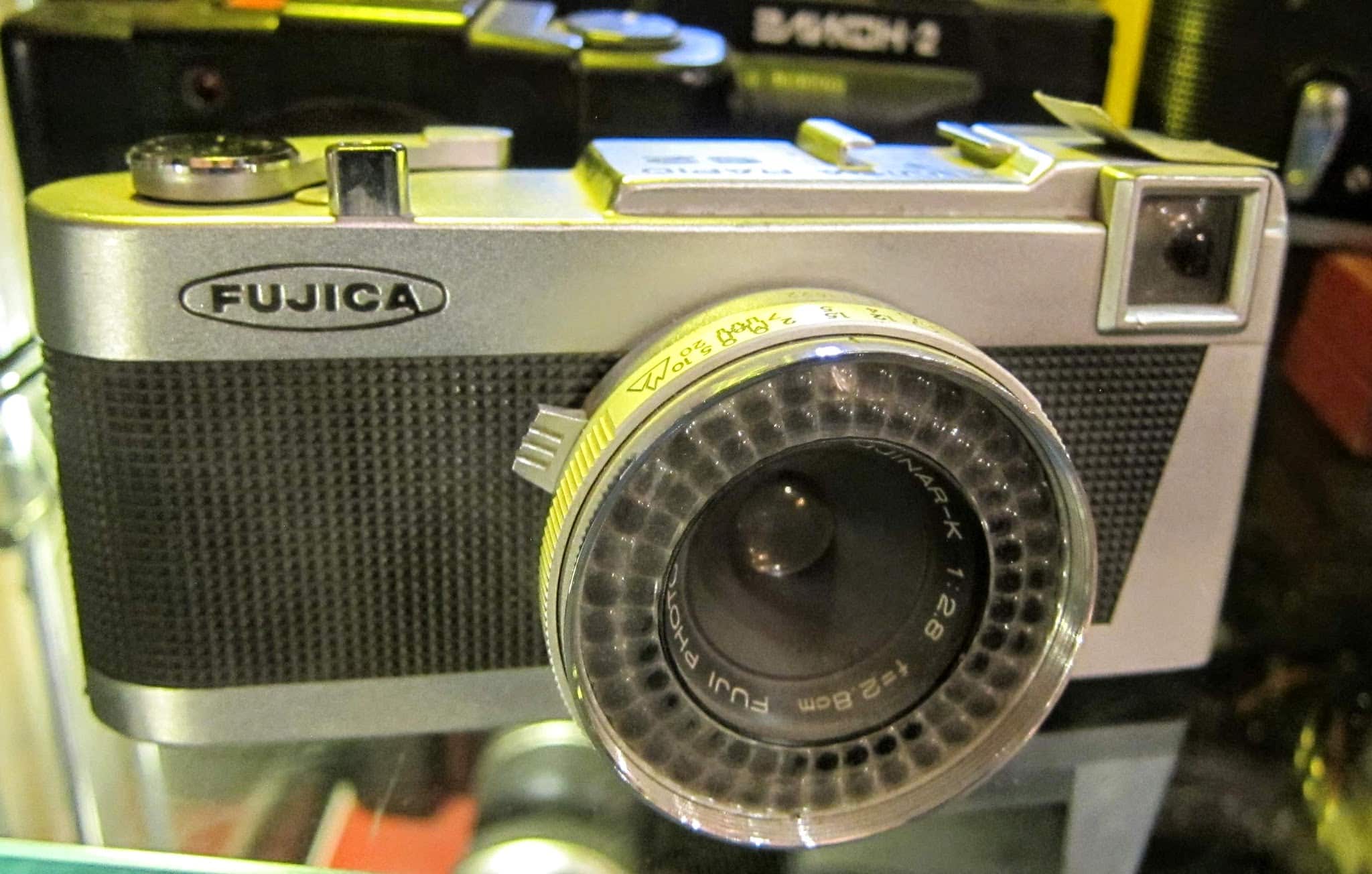 Kolekcjonerski aparat Fujica Rapid z lat 60. z automatycznym naciągiem filmu, idealny do zdjęć reporterskich i do kolekcji vintage.