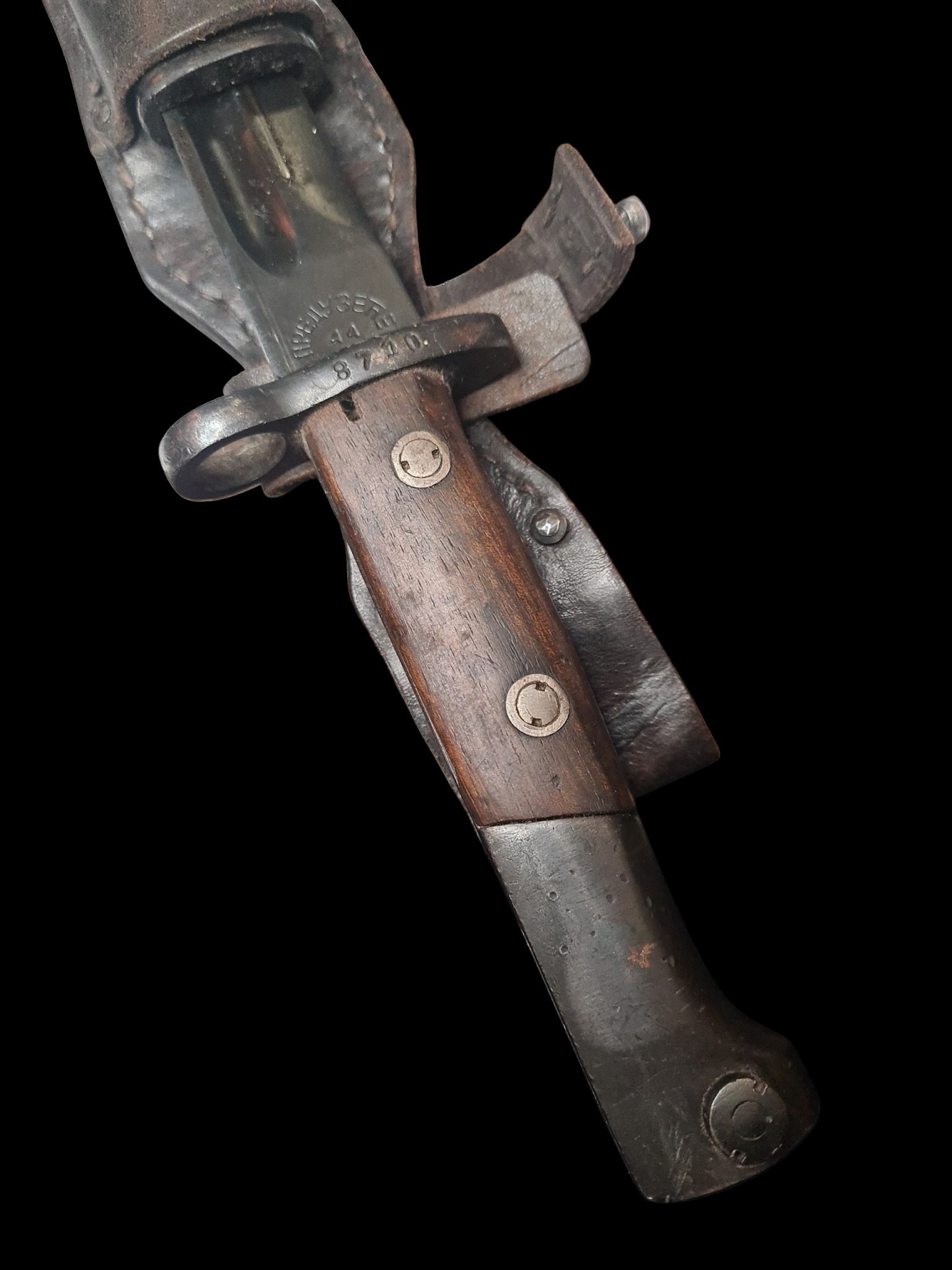 Prezentujemy rzadki, oryginalny bagnet z okresu II wojny światowej, pochodzący z terenów Jugosławii. Ten egzemplarz broni białej stanowi autentyczny artefakt militarny, który przetrwał burzliwe czasy konfliktu na Bałkanach. Charakterystyczną cechą tego bagnetu jest system mocowania za pomocą tzw. „żabki” – solidnego, sprężynowego uchwytu, który zapewniał pewne połączenie z bronią palną.