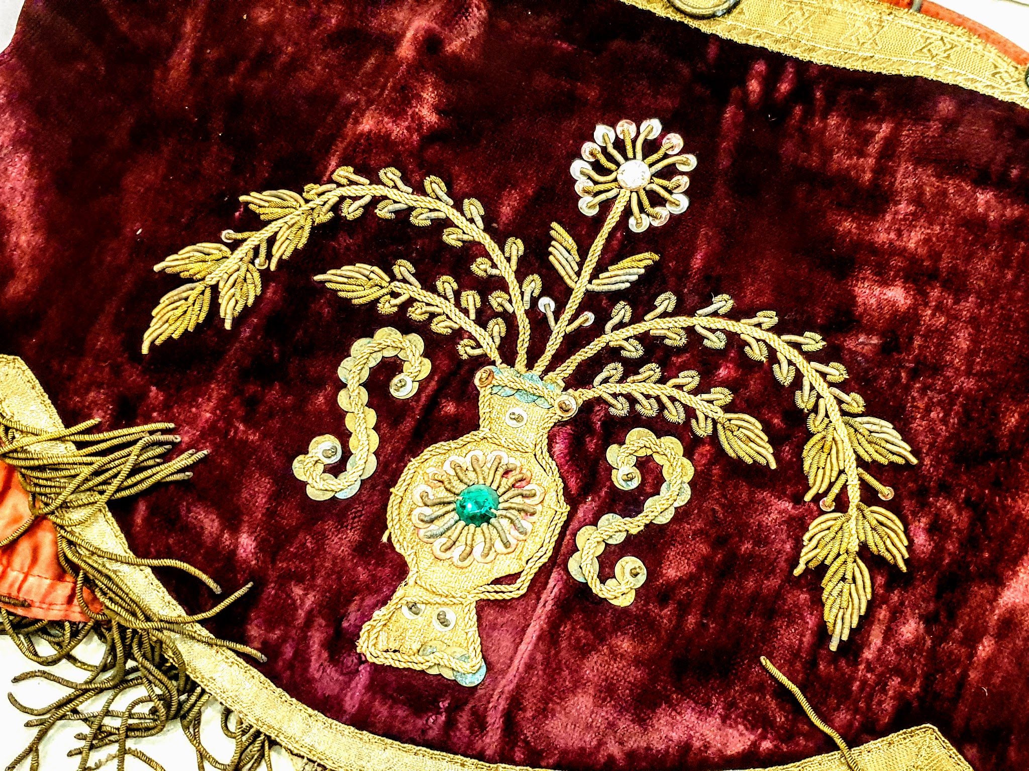 XIX-wieczny polski baldachim do parachetu z ręcznym haftem złotem i srebrem. Unikatowy zabytek sztuki sakralnej i rzemiosła artystycznego.