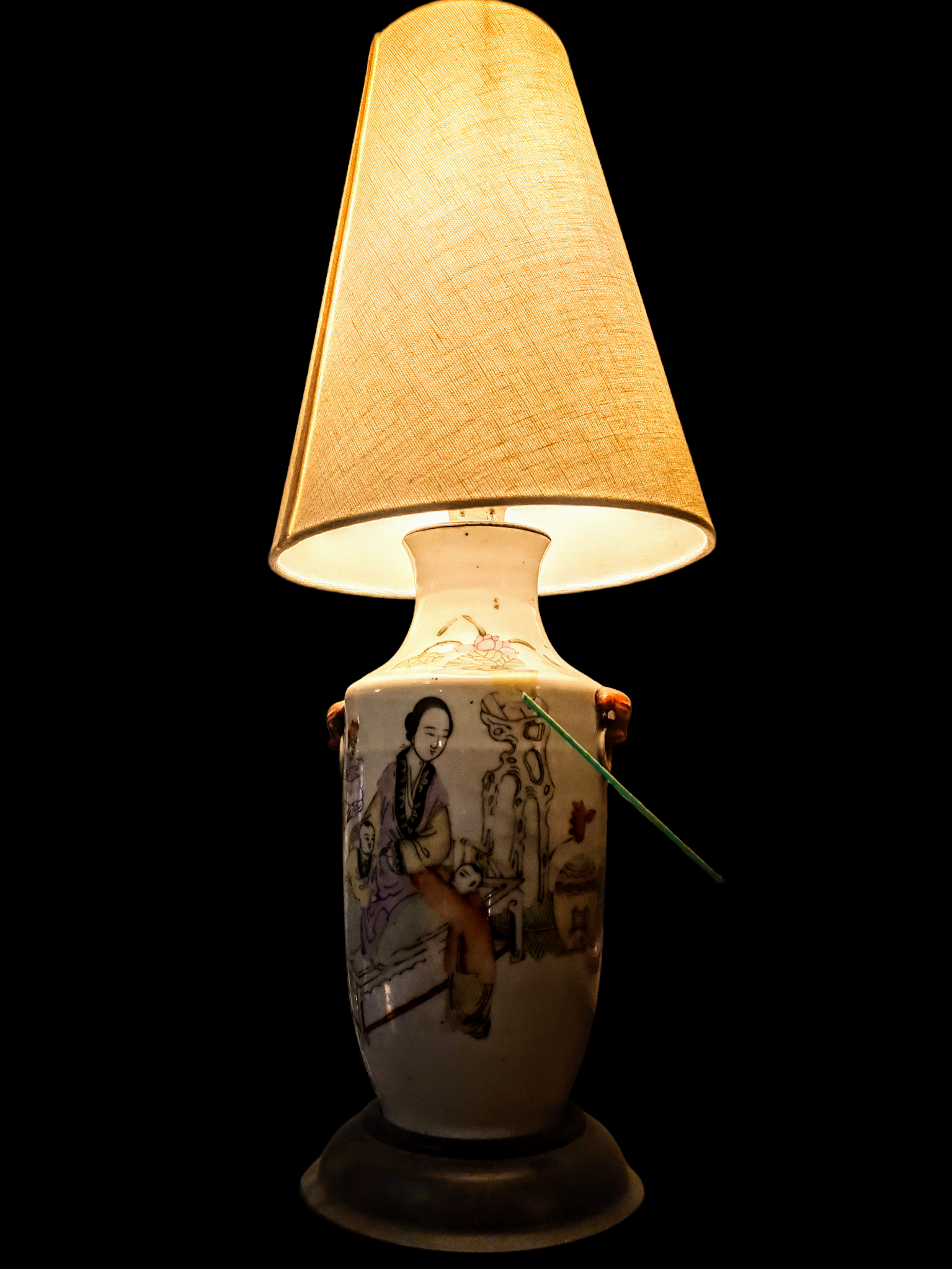 Oferujemy Państwu wyjątkowy i rzadko spotykany zestaw kolekcjonerski: parę chińskich lamp wykonanych z ceramicznych wazonów. Ten niezwykły przedmiot łączy w sobie funkcjonalność oświetlenia z elegancką formą tradycyjnego azjatyckiego naczynia, tworząc unikatowy element dekoracyjny o duszy antyku.