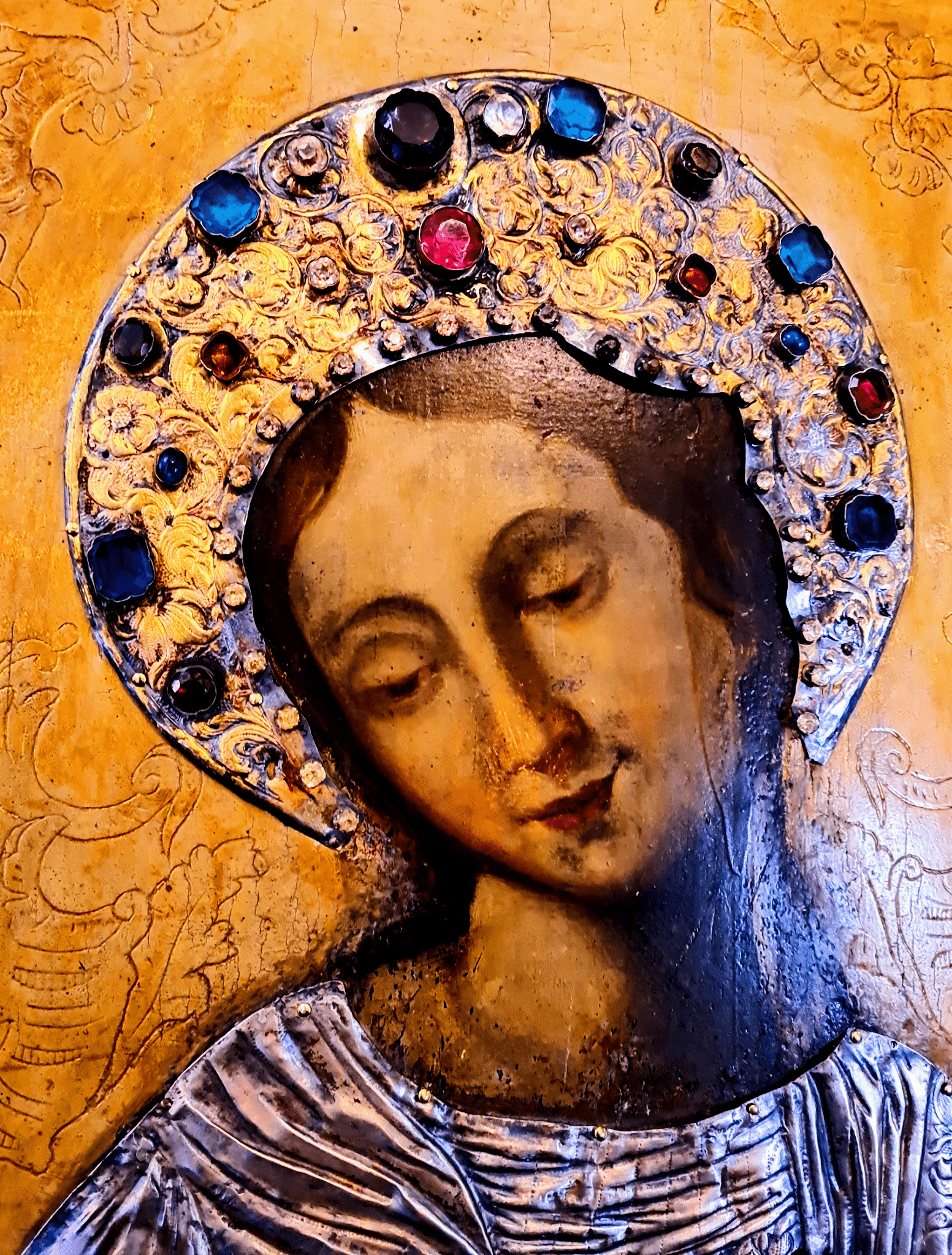 Zapraszamy do świata niezwykłego piękna i duchowości. Prezentowana duża ikona, wykonana w Polsce w XIX wieku, to wyjątkowy przykład małopolskiego malarstwa sakralnego, które z niezwykłą swobodą łączy rodzimą tradycję z inspiracjami płynącymi z włoskiego renesansu. To nie tylko przedmiot kultu, ale przede wszystkim autentyczne dzieło sztuki o wysokiej wartości kolekcjonerskiej.
