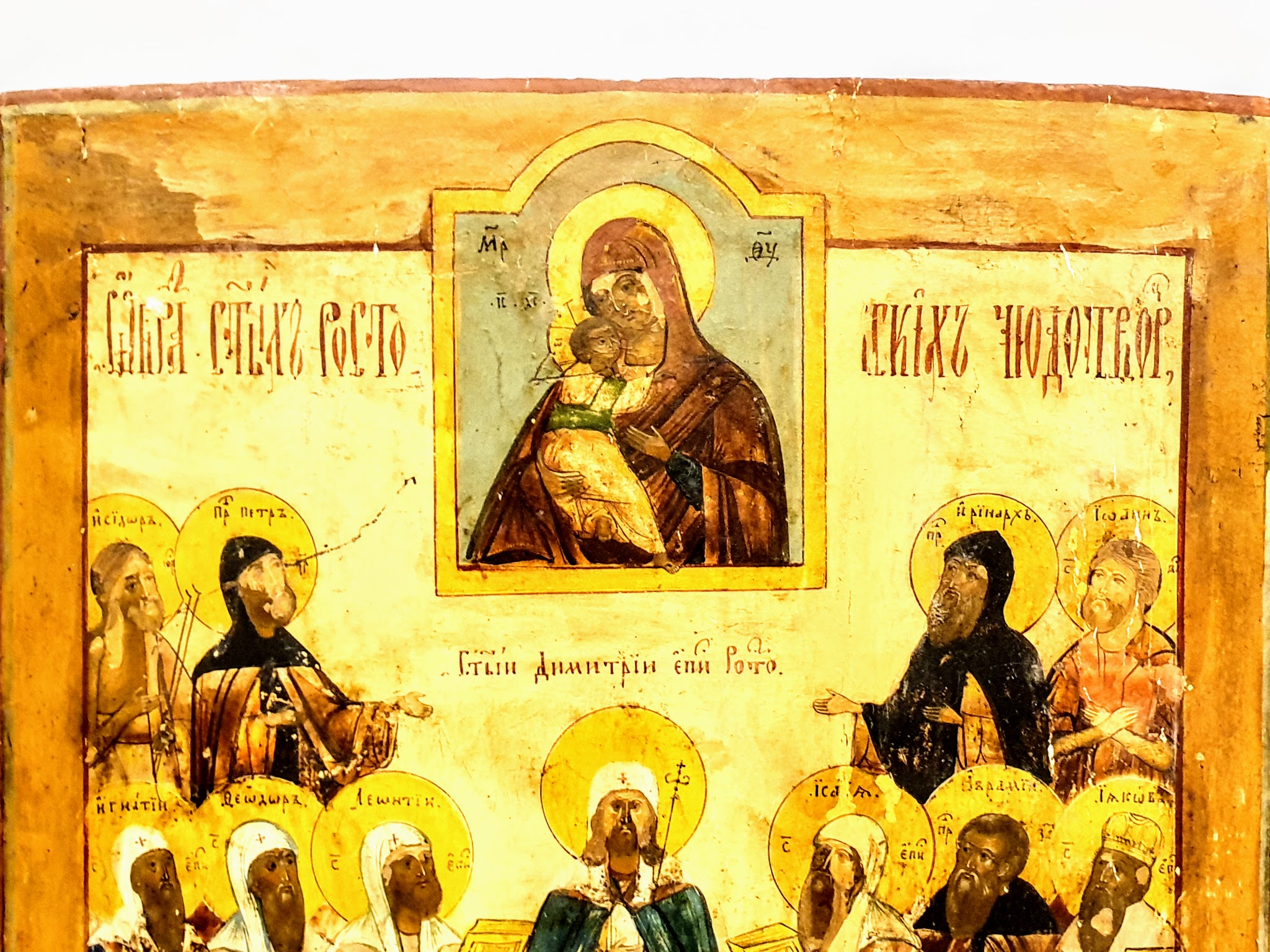 Duża ikona rosyjska – kult świętych, stan oryginalny, antyk sakralny
