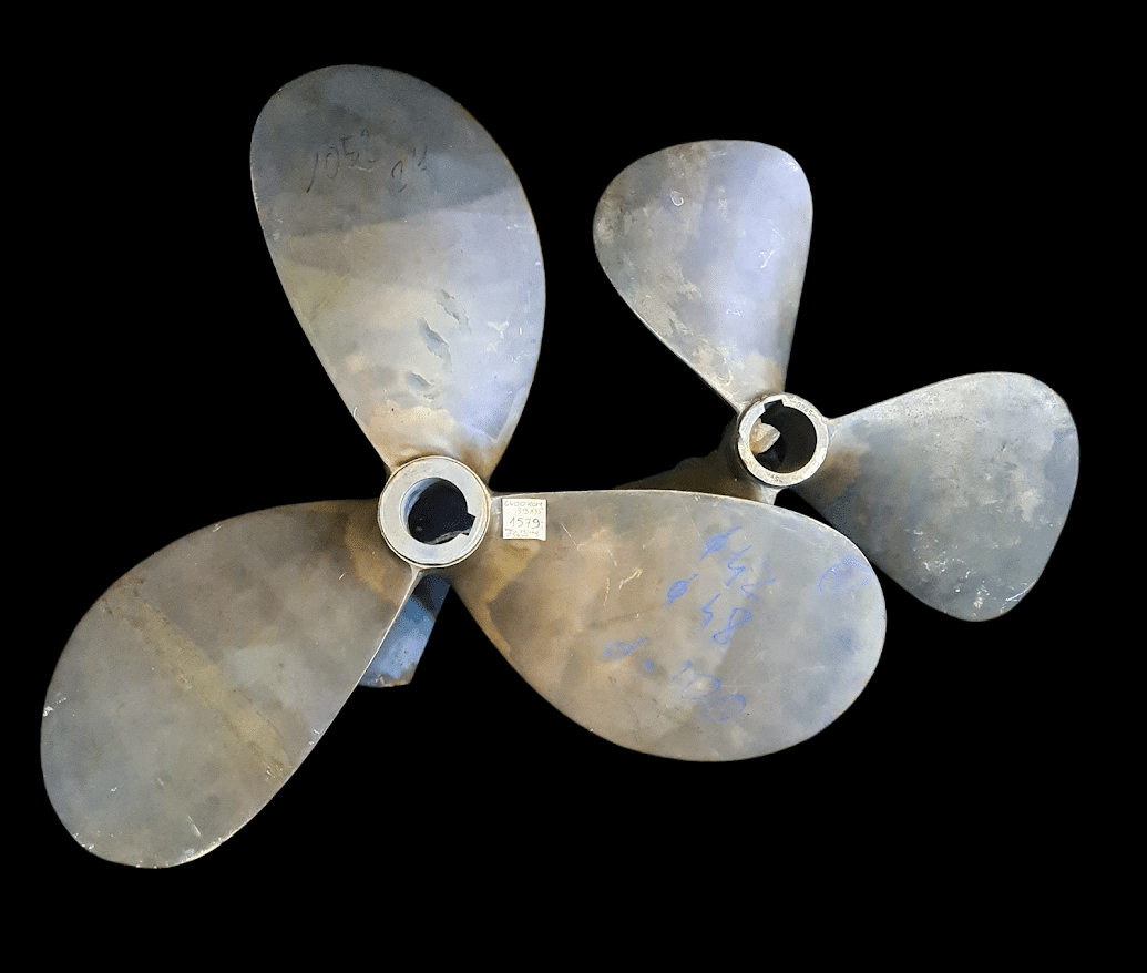 Mosięzna śruba od napedu kutra ( większa ) Średnica 56 cm . Stan bardzo dobry. Włochy Ip. XX w. Posiadamy rozmaite wielkosci srub od 20 cm do 65 cm – wszystkie mosięzne w cenach od 350 zł do 2500 zł .