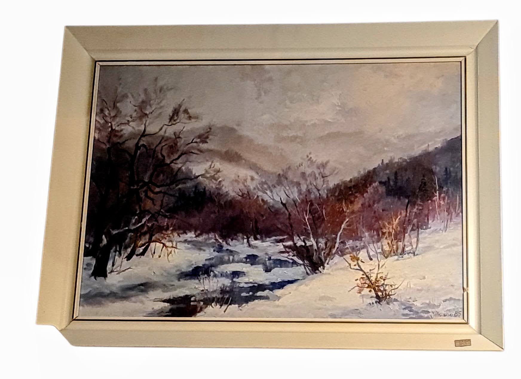 POST w budowie…..Duży, obraz olejny przedstawiający pejzaż górski. Okazyjna cena dla kolekcjonerów i miłośników sztuki.