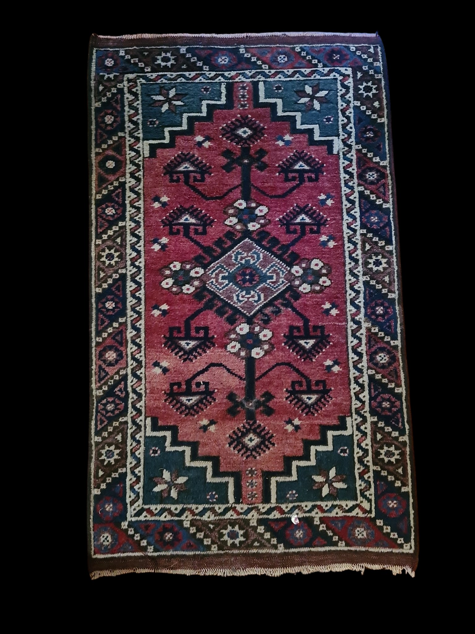 Dywanik został wykonany tradycyjną techniką ręcznego tkania, co gwarantuje jego niepowtarzalność i wartość rzemieślniczą. Każdy splot, nieregularność struktury i odcień barwnika opowiada historię jego powstania. Tego typu dywaniki, często zwane „kilimkami” lub „chodnikami”, towarzyszyły ludom koczowniczym, służąc zarówno celom użytkowym, jak i dekoracyjnym w jurtach czy namiotach. Były elementem wyposażenia, ozdobą, a niekiedy także izolacją od chłodnego podłoża.