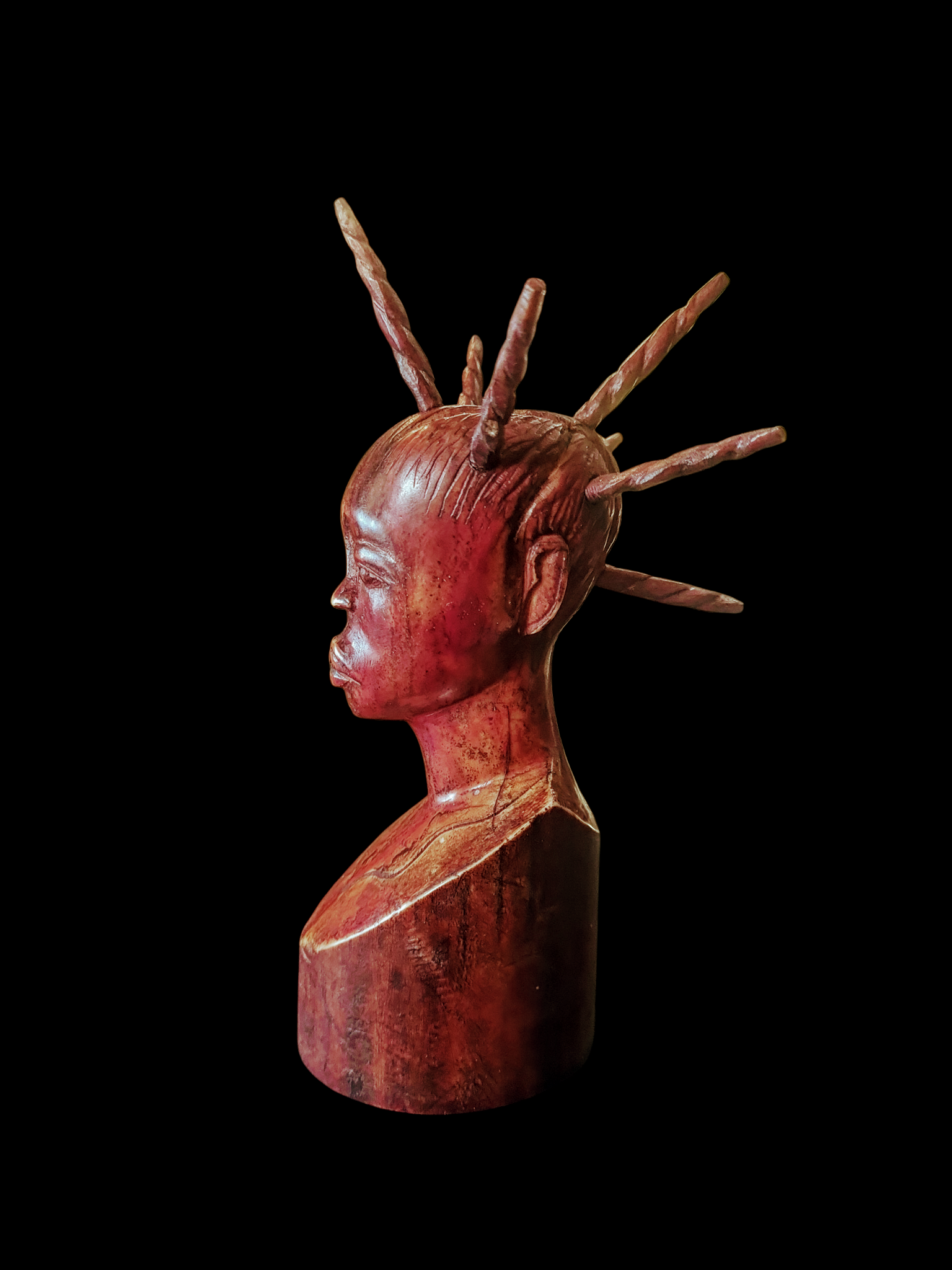 Każdy detal – od precyzyjnie oddanej fryzury z dredami, przez rysy twarzy, po ogólną formę – świadczy o wysokim kunszcie nieznanego artysty. Tego typu obiekty były nie tylko dziełami sztuki, ale często pełniły funkcje rytualne lub prestiżowe. Stanowi ona doskonały przykład etnicznej rzeźby figuralnej, poszukiwanej przez kolekcjonerów sztuki afrykańskiej i antyków etnograficznych.