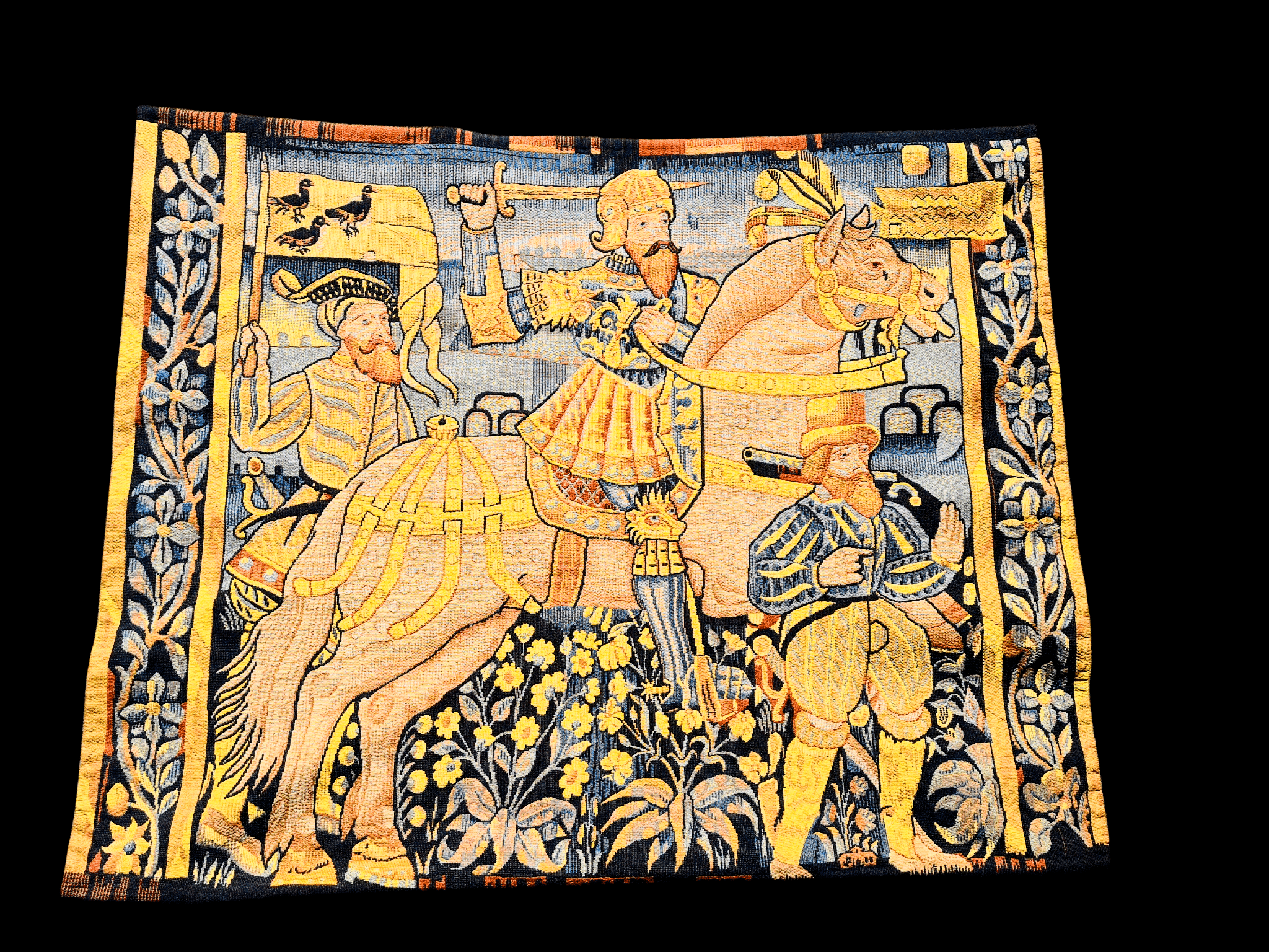 Dokładnie sprawdzony i przygotowany do bezpiecznego transportu, ten rycerski gobelin czeka na nowego opiekuna, który doceni jego urodę i historię. To doskonały wybór dla konesera, poszukującego dekoracji z duszą.
