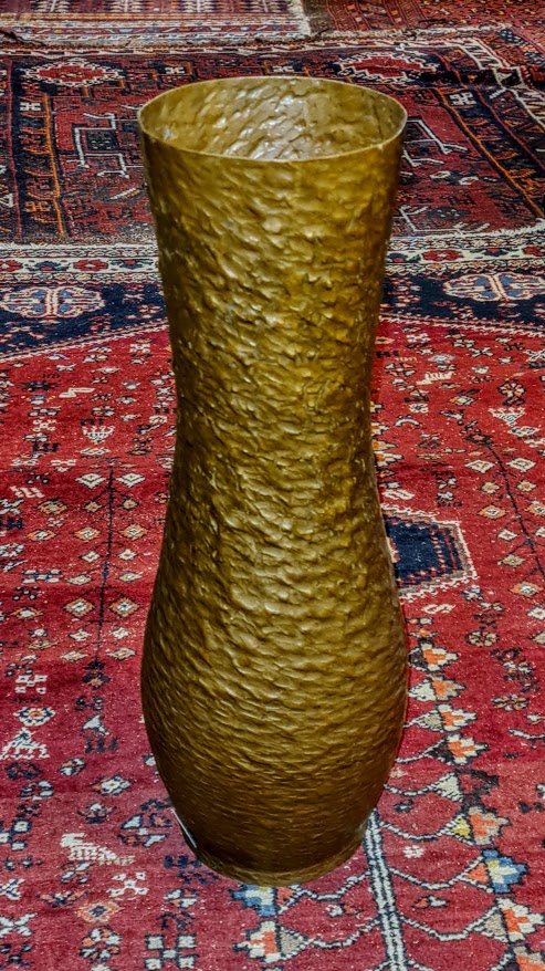 Na sprzedaż prezentowany jest unikatowy, duży wazon z miedzi, stanowiący doskonały przykład niemieckiego rzemiosła artystycznego (Kunstgewerbe) z pierwszej połowy XX wieku. Wazon jest sygnowany nazwiskiem wybitnego złotnika i projektanta – Hayno Fockena.