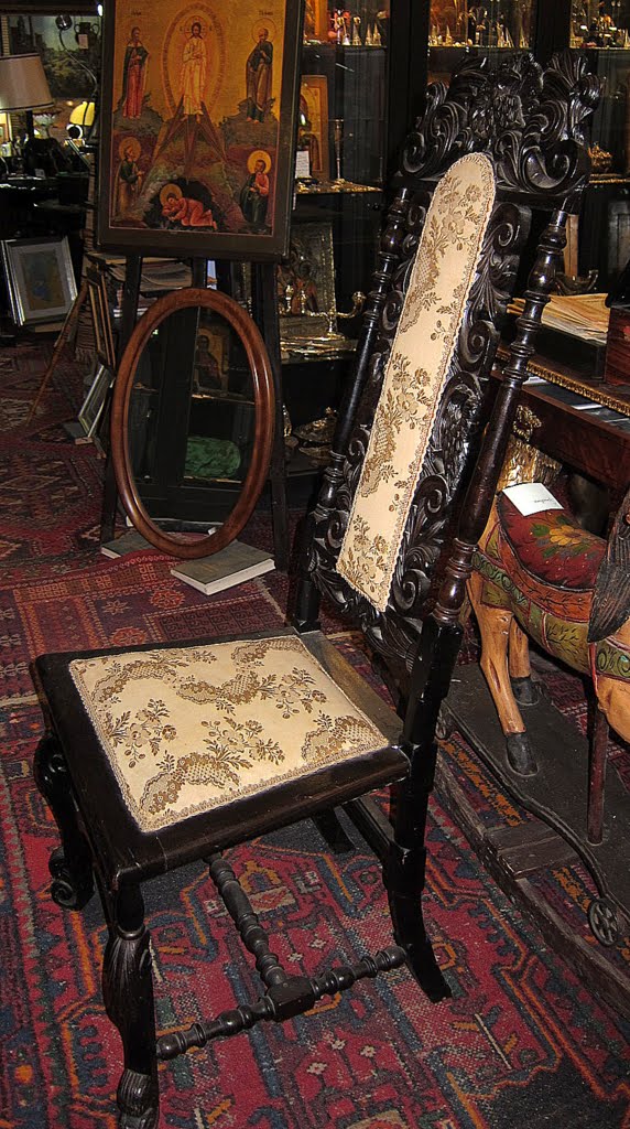 wpis w budowie……………..Oryginalne krzesło gdańskie z XX wieku, wykonane z rzeźbionego dębu barwionego na czarno. Stan bardzo dobry. Unikatowy mebel kolekcjonerski.