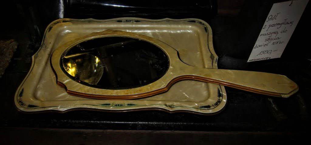 Lusterko i tacka z celuloidu – ponad 100-letni zestaw toaletowy.