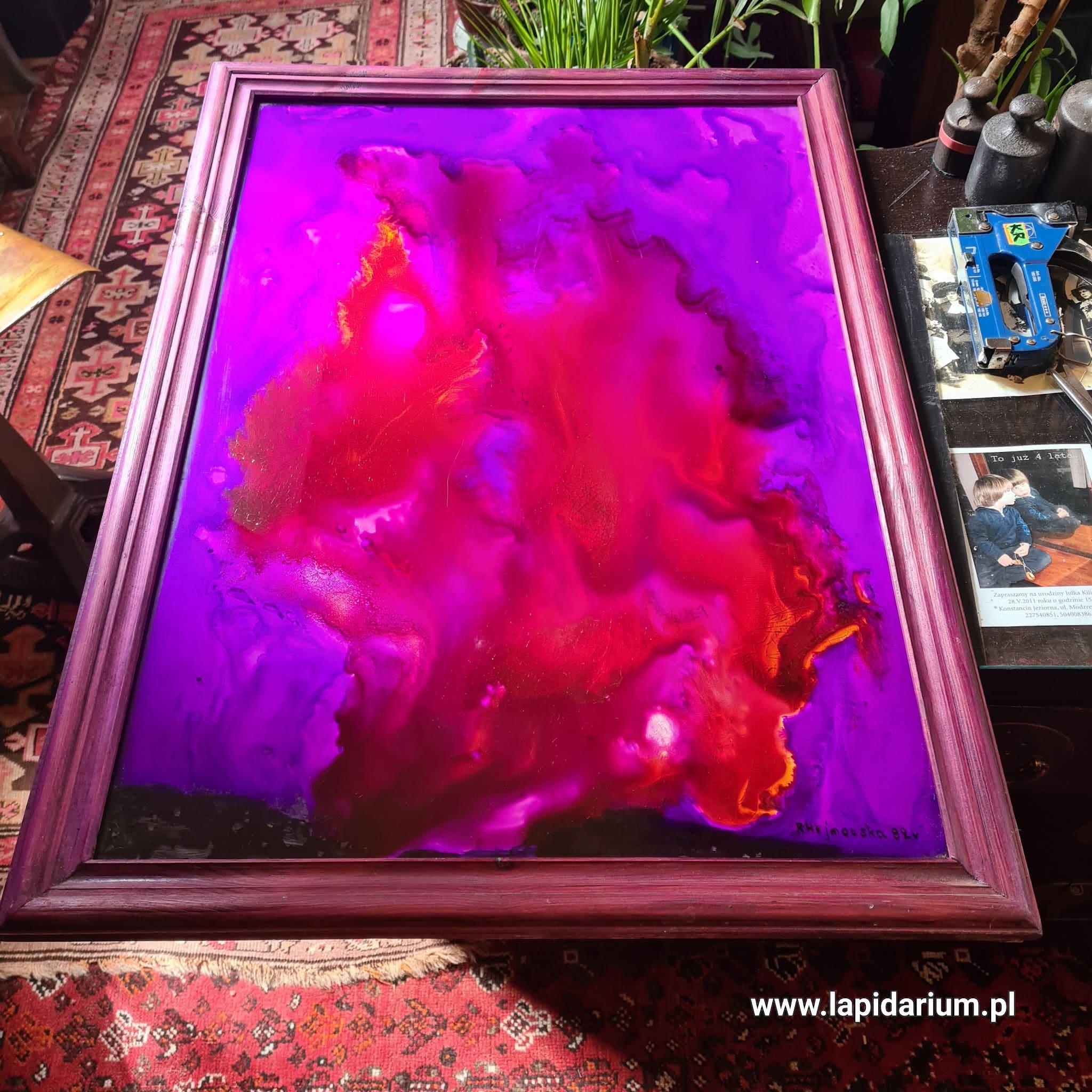 Malarstwo na szkle to technika o głębokich korzeniach, szczególnie popularna w polskiej sztuce ludowej Podhala. Artystka Hejnowska, czerpiąc z tego dziedzictwa, nadaje mu nowoczesny wyraz, często operując symbolicznymi motywami, scenami rodzajowymi lub abstrakcyjnymi formami. Zakup tej pracy to inwestycja w autentyczny kawałek sztuki, który może stać się centralnym punktem kolekcji sztuki ludowej, współczesnej polskiej sztuki lub zbioru unikatowych przedmiotów dekoracyjnych.
