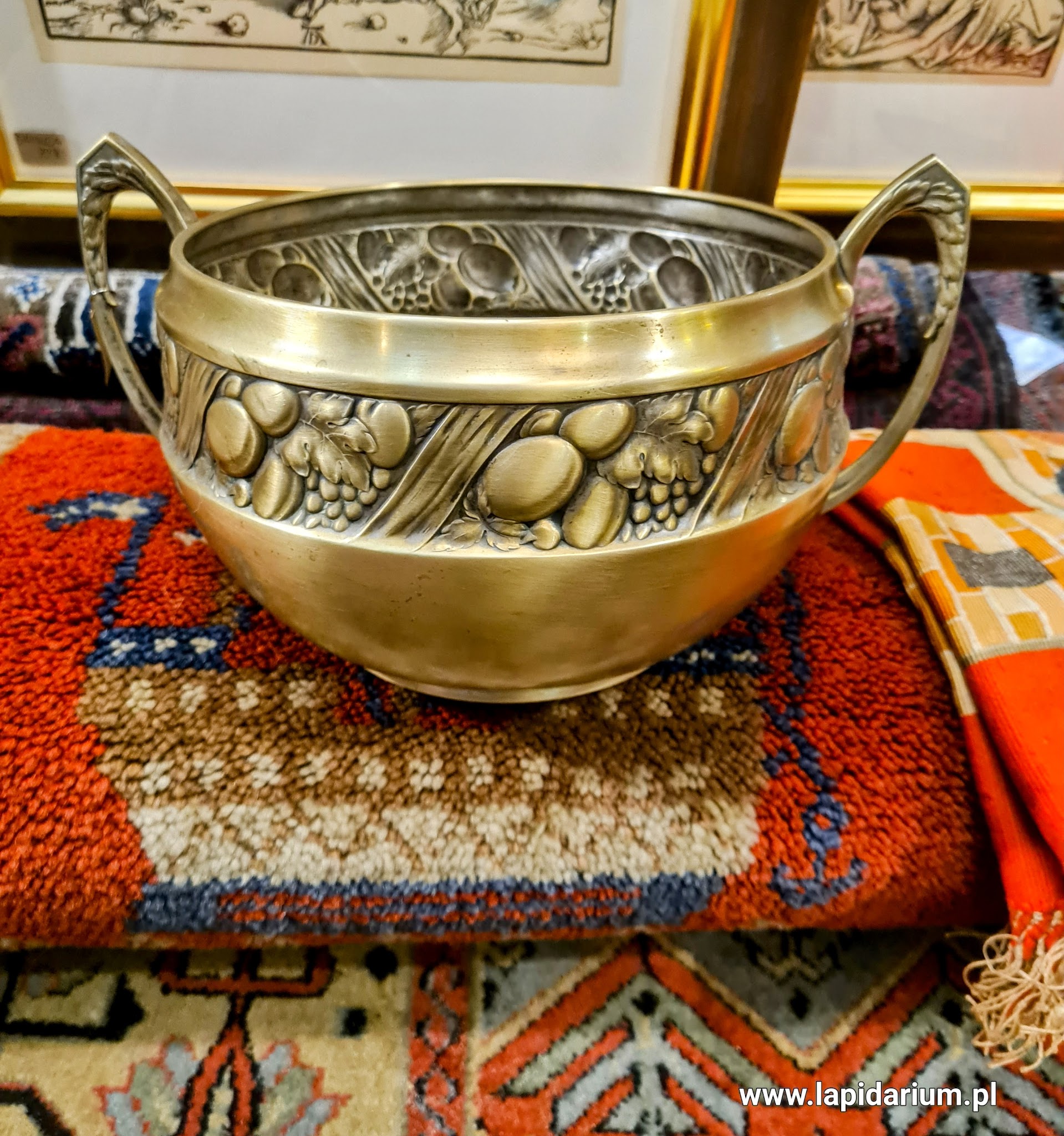 Stan: Dobry, jak na wiek przedmiotu. Widoczne są naturalne ślady użytkowania, patyna oraz wspomniane fragmenty srebrzenia, które podkreślają autentyczność i historię donicy. Nie posiada ona poważnych uszkodzeń strukturalnych, co czyni ją gotową do ekspozycji lub użytku.