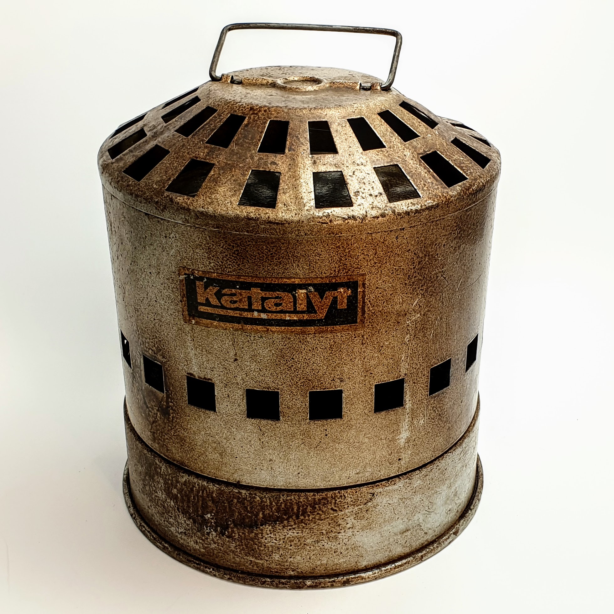 Autentyczny niemiecki wojskowy ogrzewacz katalityczny (Katalyt) z połowy XX wieku. Piecyk okopowy na benzynę ekstrakcyjną – unikatowy przedmiot kolekcjonerski.