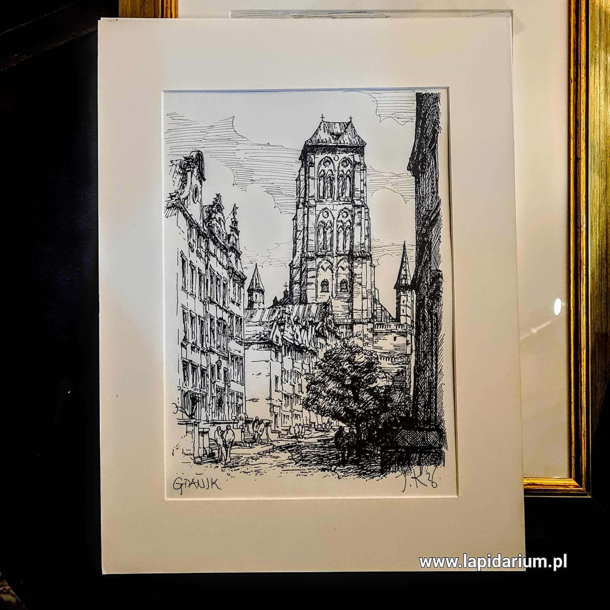 Datowana na 2026 rok praca kolekcjonerska techniką mieszaną (A4) inspirowana Gdańskiem, może zostać oprawiona w elegancką, drewnianą ramę – wtedy cena 489 zł .