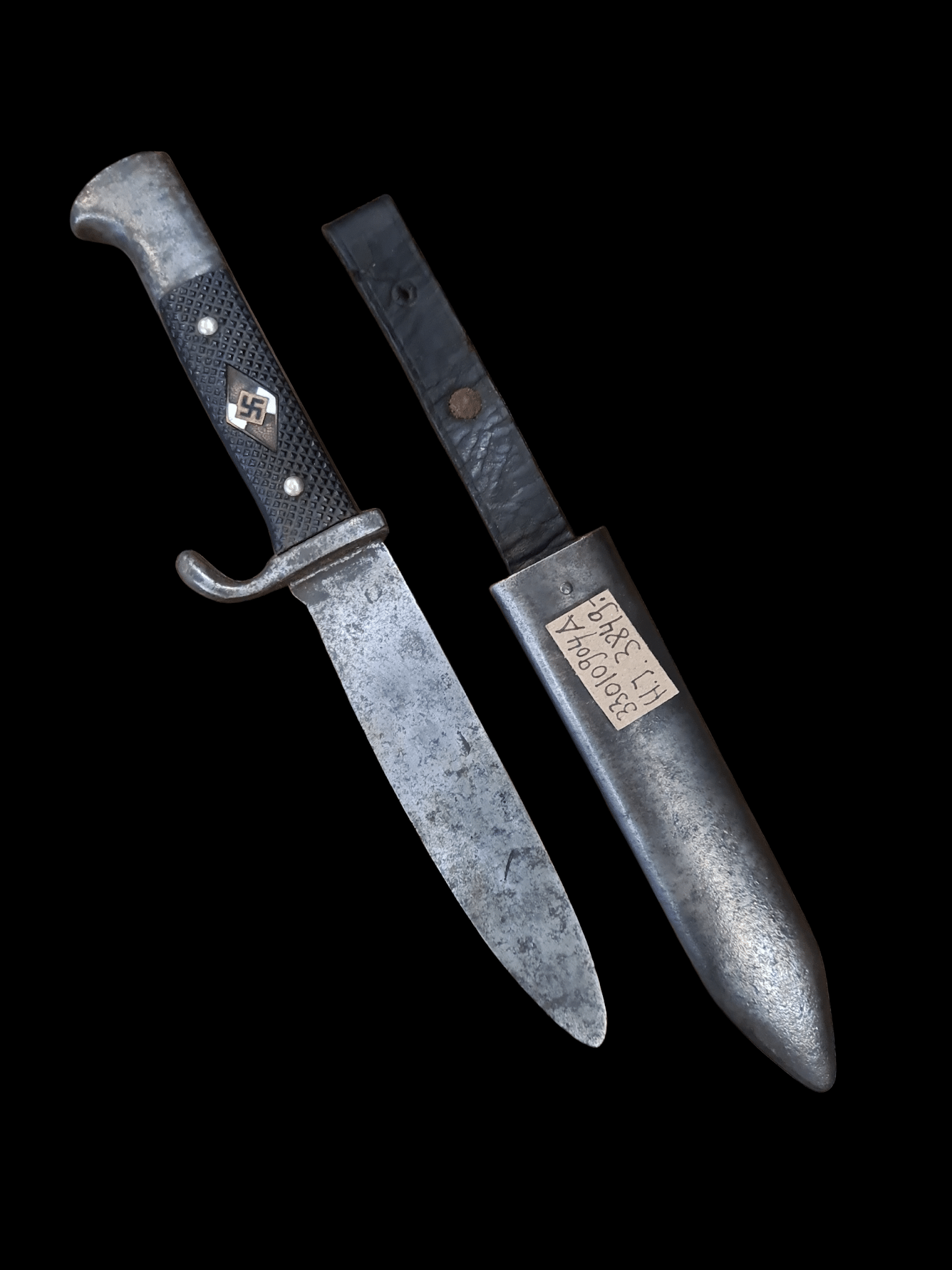 Nóż Hitlerjugend (HJ-Fahrtenmesser) był standardowym elementem umundurowania i wyposażenia członków organizacji młodzieżowej NSDAP. Stanowił symbol przynależności i był wręczany podczas ceremonii. Ten konkretny egzemplarz posiada wszystkie części oryginalne, co potwierdza jego autentyczność i zwiększa wartość dla kolekcjonera. Zachowała się głownia, rękojeść z okładzinami, pochwa z oryginalnymi okuciami i zawieszeniem.