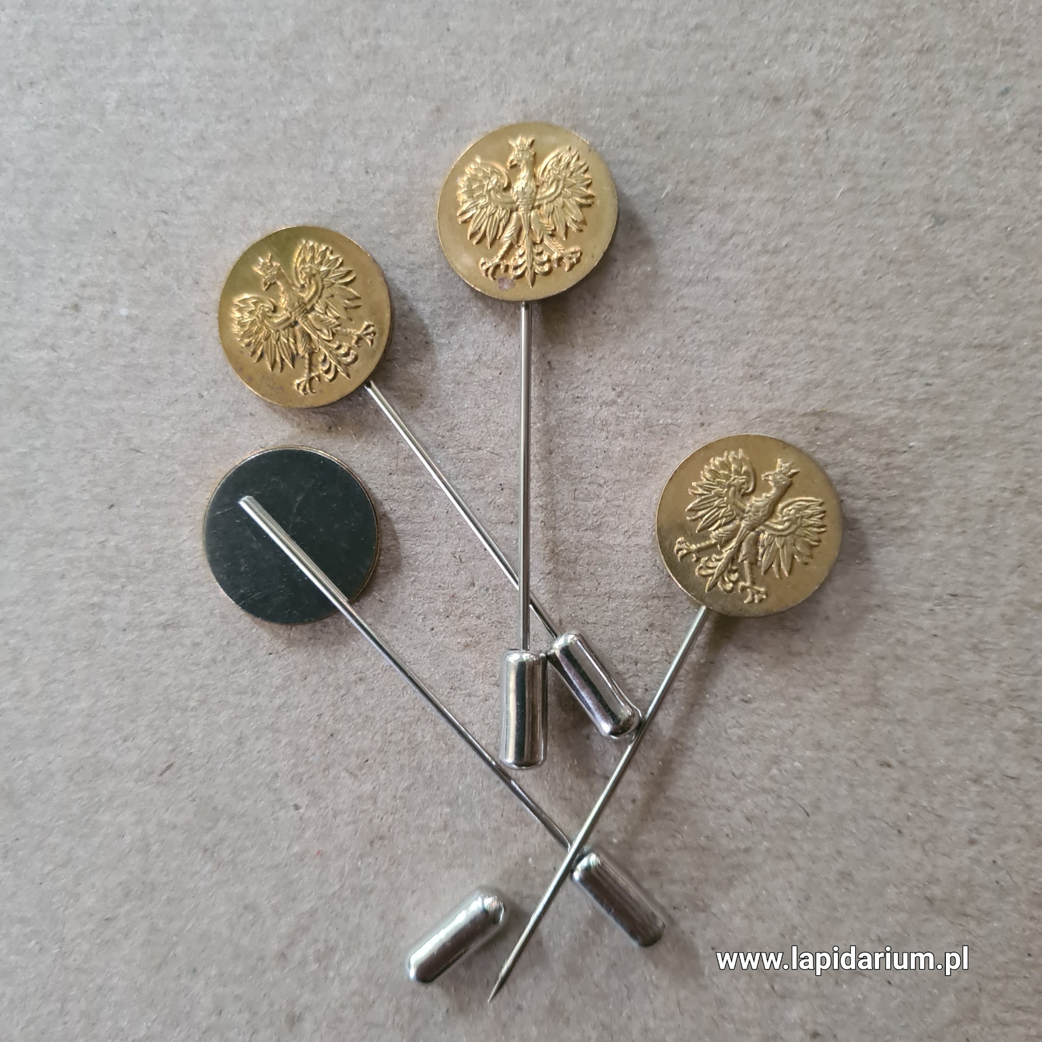 Mosiężna wpinka patriotyczna z wizerunkiem Orła Białego na szpilce. Symboliczny przedmiot kolekcjonerski i elegancka ozdoba.