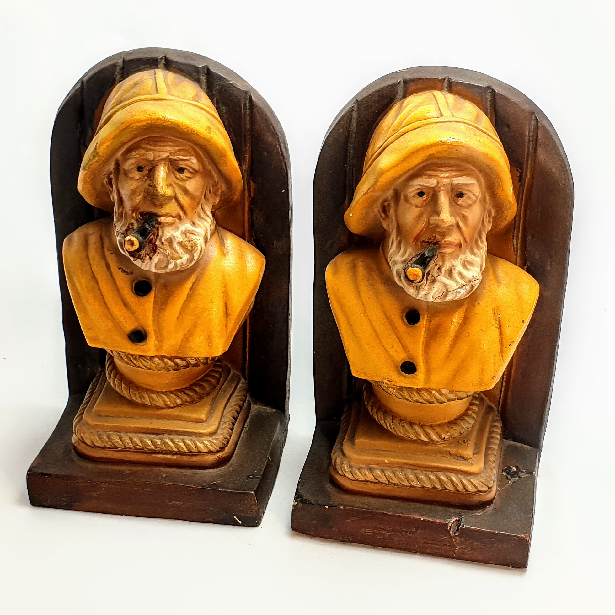 Unikatowa para marynistycznych podpórek pod książki z gipsu, ręcznie malowanych farbą olejną. USA, XX wiek. Stan bardzo dobry.