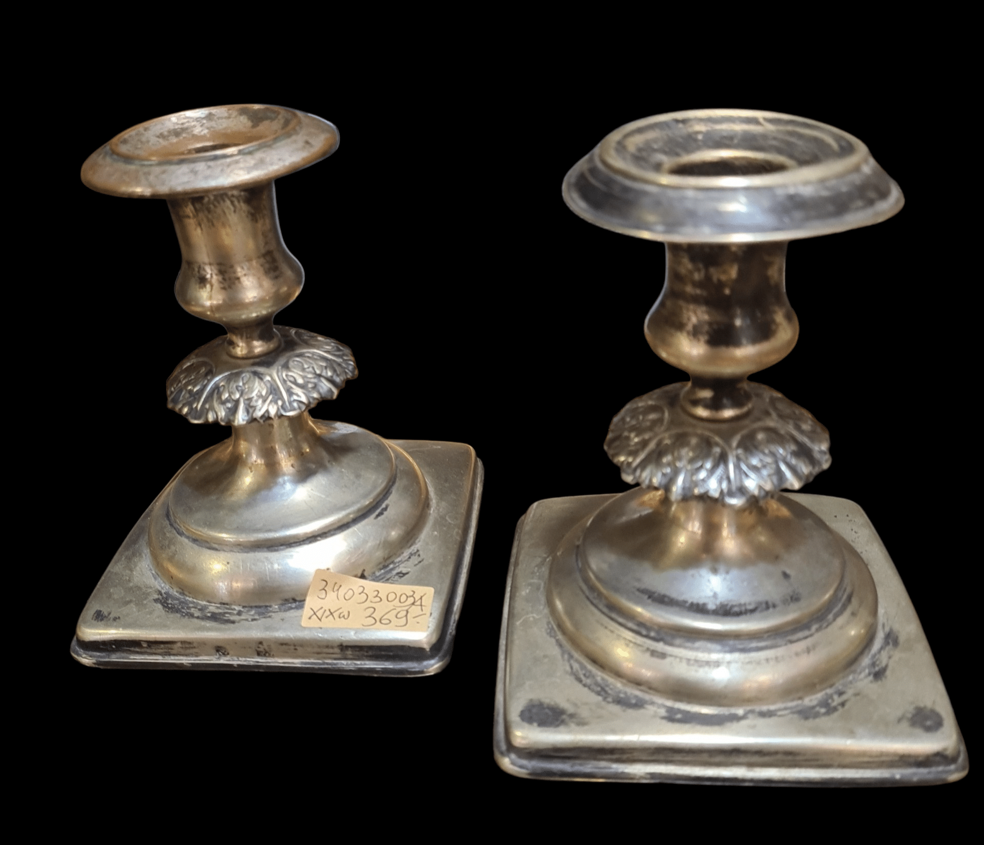 Świeczniki zostały wykonane z metalu i starannie posrebrzane. Czas nadał im szlachetną, naturalną patynę, która podkreśla ich wiek i historię. Brak ingerencji konserwatorskiej gwarantuje, że otrzymują Państwo przedmiot w stanie nienaruszonym, takim, w jakim przetrwał do naszych czasów. Forma świeczników jest typowa dla judaików z tego okresu, łącząca funkcjonalność z prostotą i elegancją zdobnictwa.
