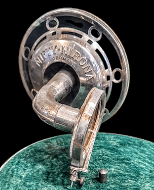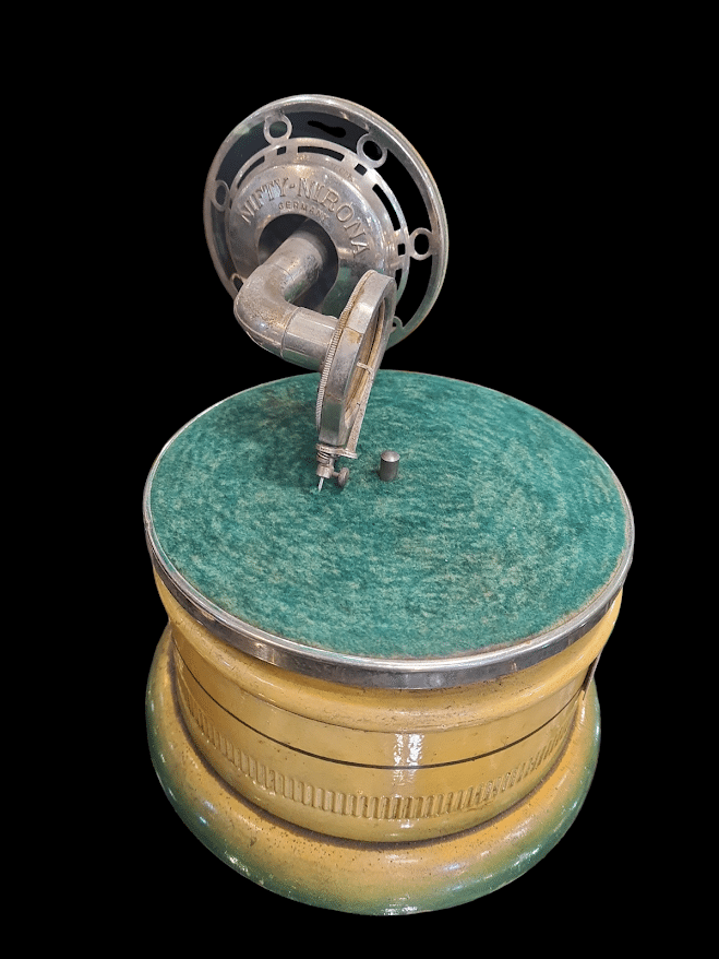 Patefon miniaturowy , turystyczny Nifty-Nirona – Niemcy XIX w .
