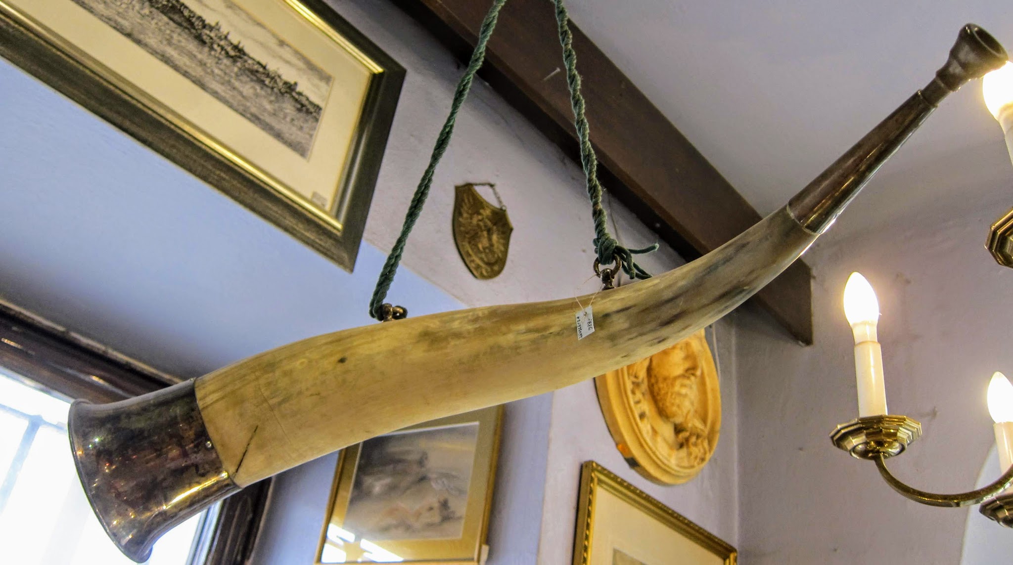 Róg posiada wyraźne ślady użytkowania, które dodają mu autentyczności i historii. To obiekt o dużej wartości kolekcjonerskiej i sentymentalnej, będący namacalnym łącznikiem z dawnymi tradycjami. Idealny jako centralny punkt kolekcji lub charakterystyczny element wystroju gabinetu, pracowni czy domu w stylu dworkowym.