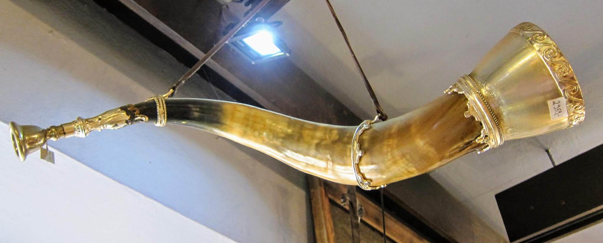 Róg został solidnie okuty metalem (prawdopodobnie mosiądzem lub miedzią), co zabezpieczało go przed pęknięciami i nadawało mu wyrazisty, rustykalny charakter. Okucia nie tylko wzmacniały konstrukcję, ale także pełniły funkcję ozdobną, podkreślając myśliwskie przeznaczenie przedmiotu. Integralną częścią rogu jest oryginalny ustnik do trąbienia, co potwierdza jego użytkowy charakter. Tego typu rogi służyły do sygnalizacji podczas polowań, zwoływania uczestników, czy też jako element ceremoniału myśliwskiego.