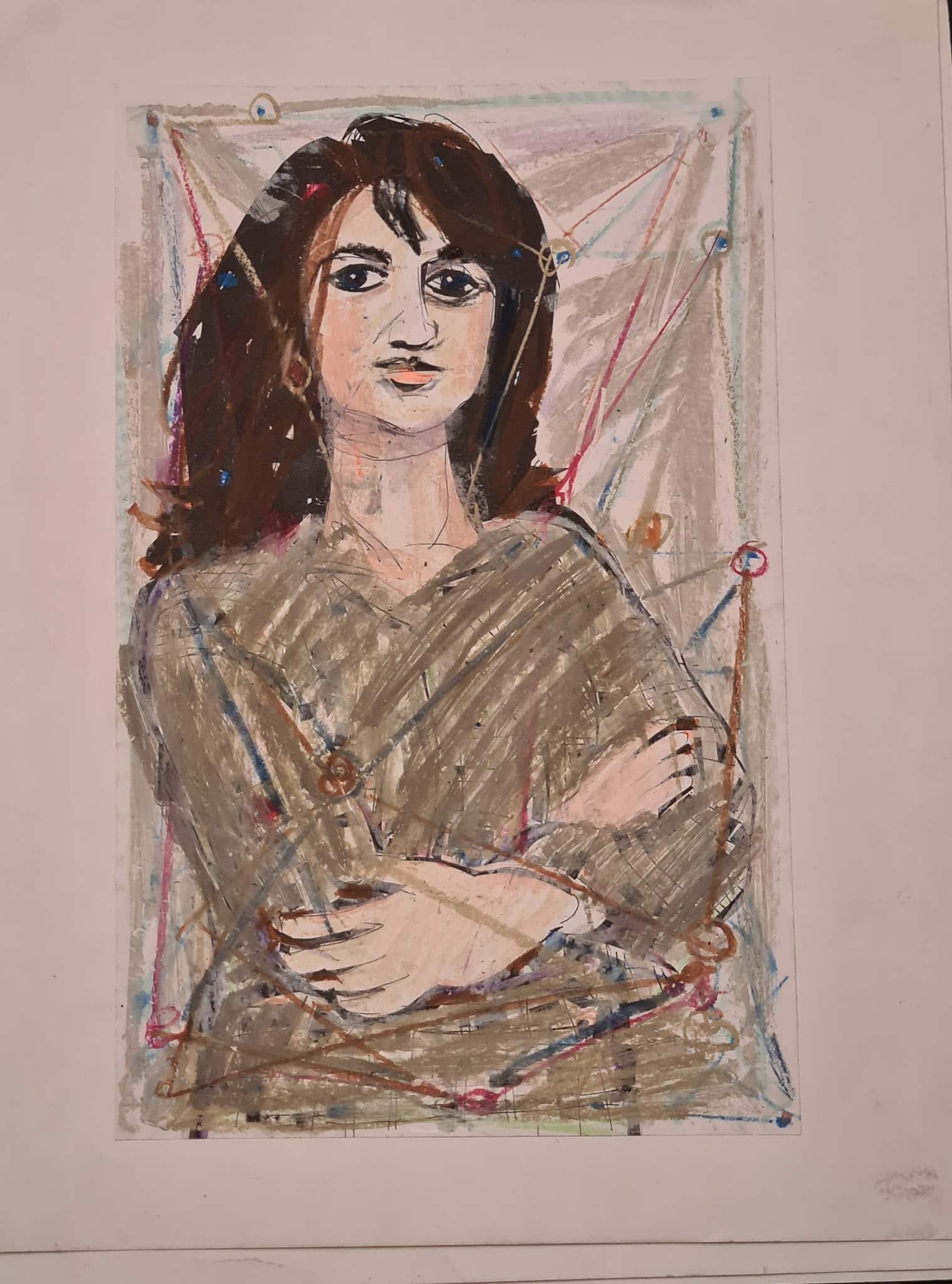 Zachwycający, pełen ekspresji portret młodej dziewczyny, wykonany przez utalentowanego artystę o nazwisku Świątkowski. To wyjątkowe dzieło sztuki na papierze, łączące precyzję rysunku kredką z dynamicznymi, swobodnymi plamami tuszu. Technika mieszana nadaje pracy niezwykłą głębię i fakturę, ukazując kunszt oraz wrażliwość autora w uchwyceniu delikatności modelki i jej wewnętrznego światła.