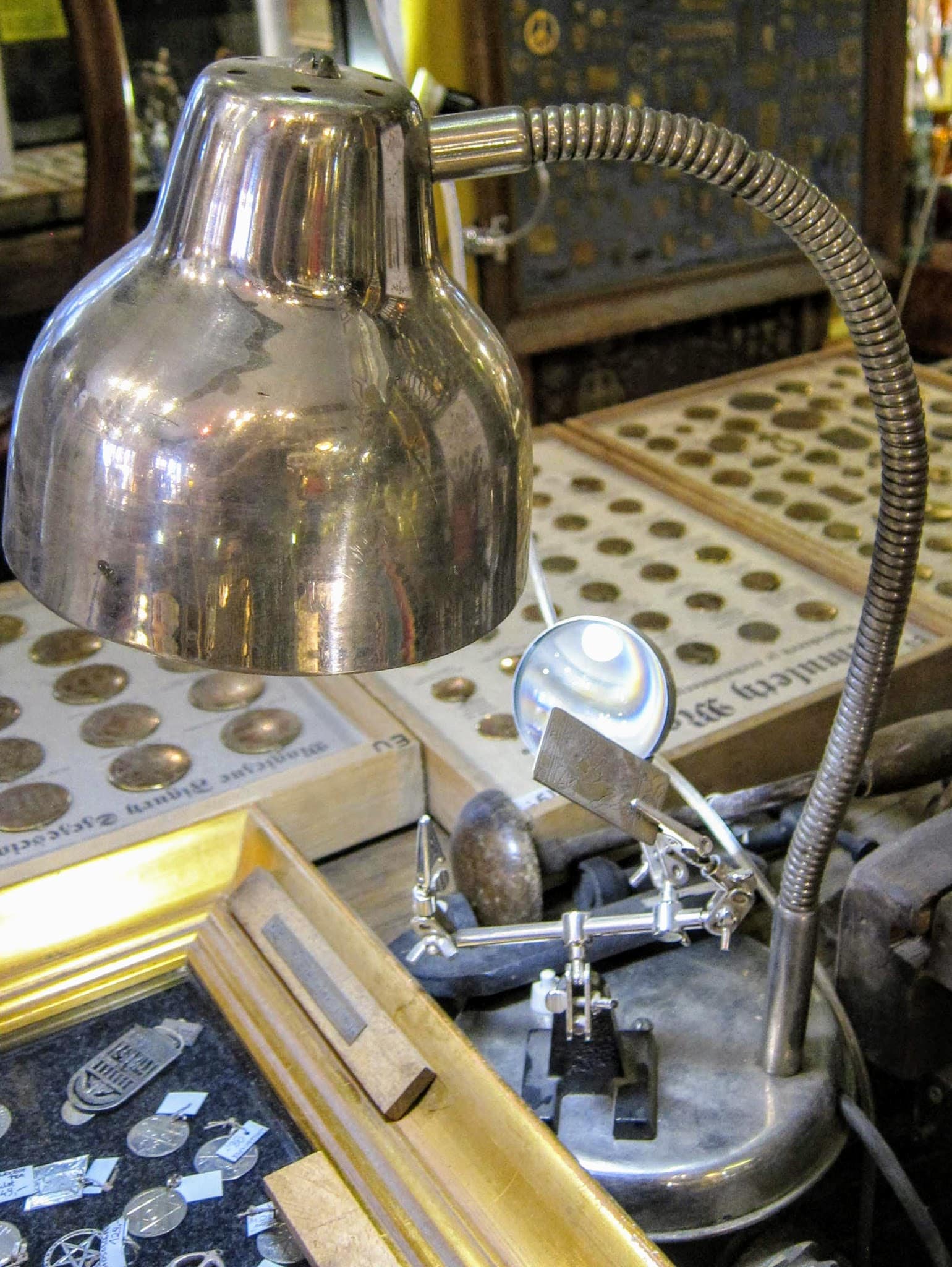 Przedwojenna lampa biurowa z mosiądzu niklowanego – lata 30. XX wieku