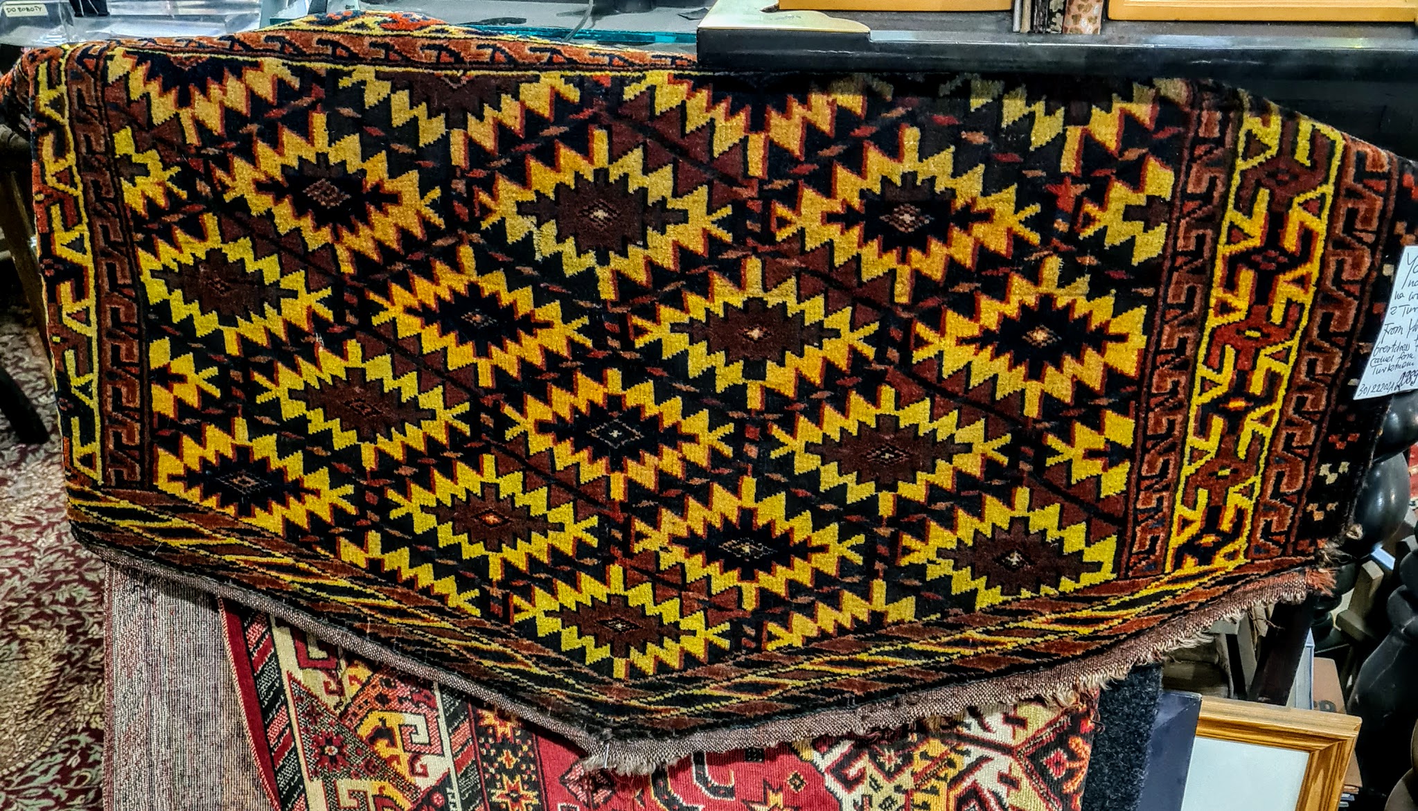 Autentyczna sakwa dla wielbłąda z Persji (XIX w.) z wysokiej klasy tkaniny dywanowej. Unikatowy zabytek etnograficzny i rzadkość kolekcjonerska.