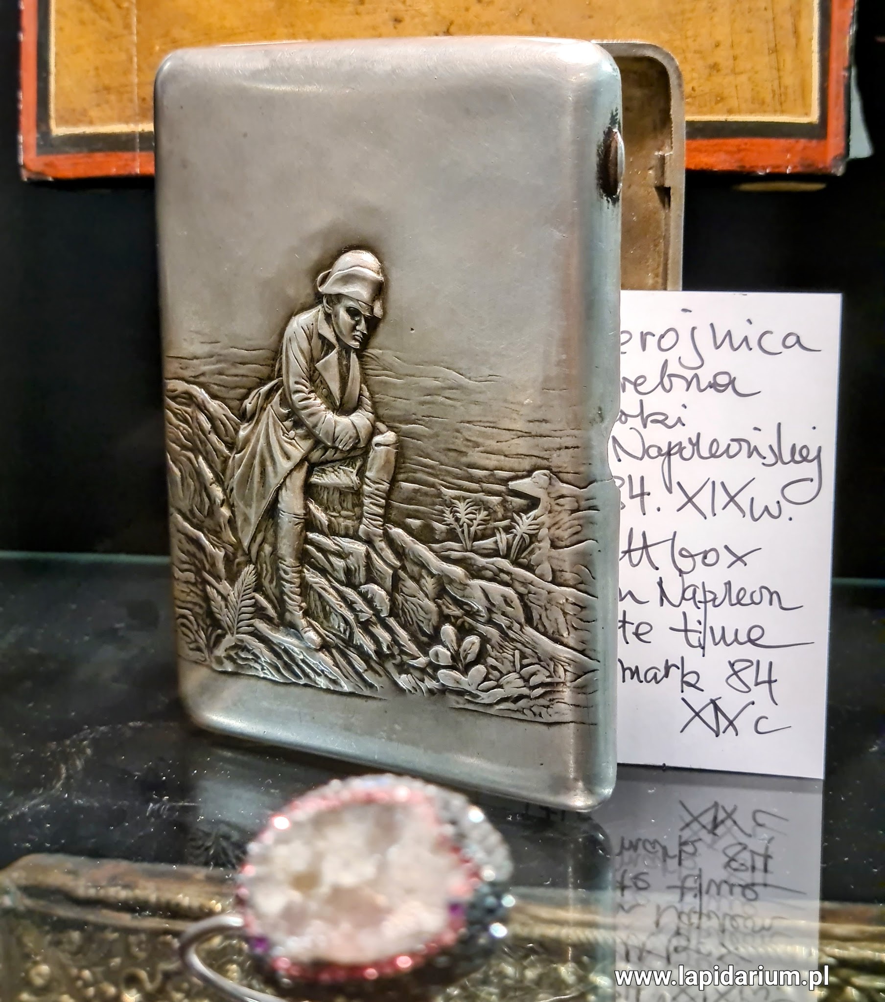Masywna srebrna papierosnica z epoki napoleońskiej z realistycznym wizerunkiem Napoleona. Próba 84.