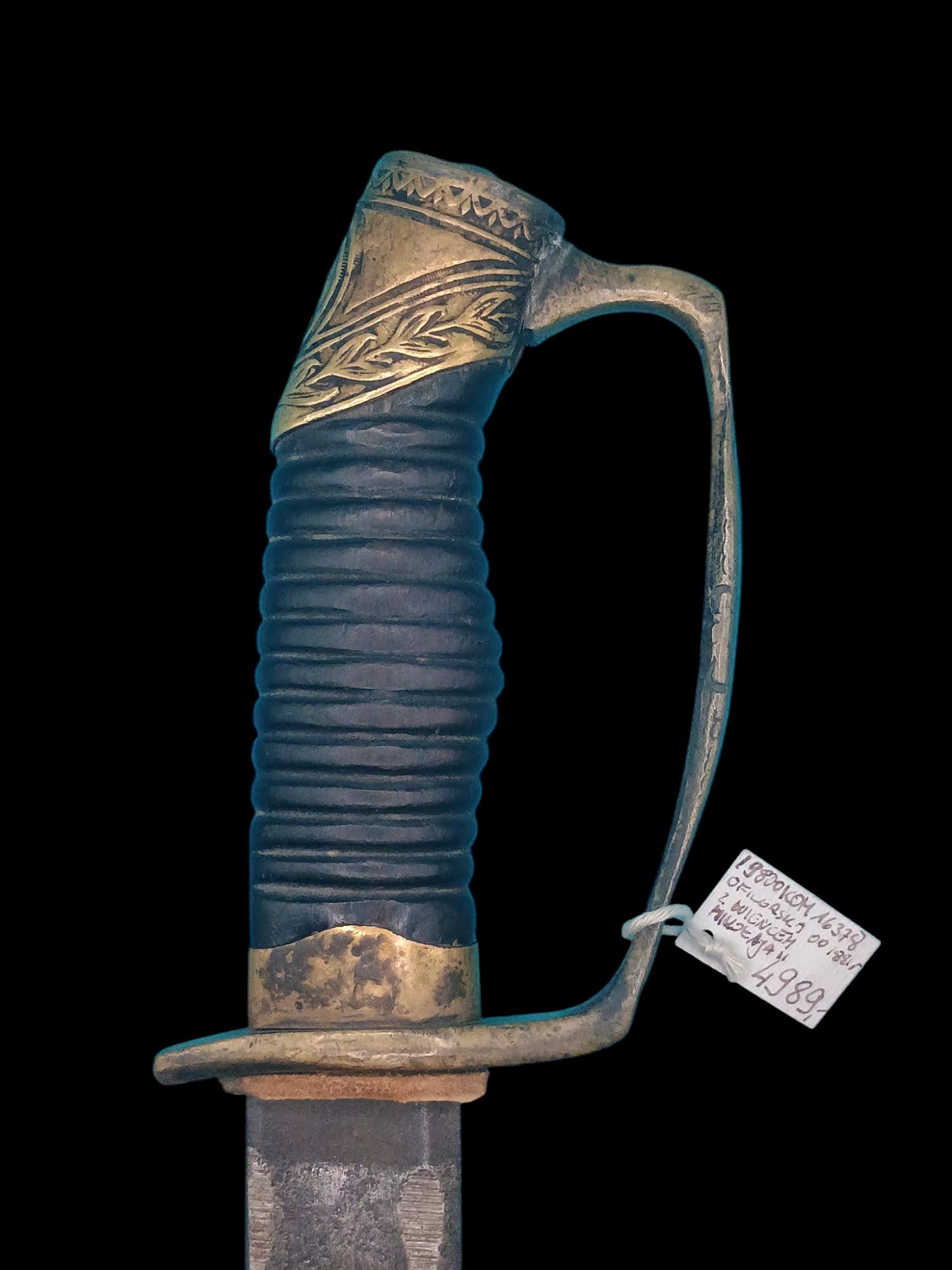 Stan przedmiotu: Dobry, adekwatny do wieku. Szabla prezentuje typowe dla swego czasu ślady użytkowania, które podkreślają jej autentyczność. Nie posiada poważnych uszkodzeń strukturalnych. Pochwa jest kompletna.