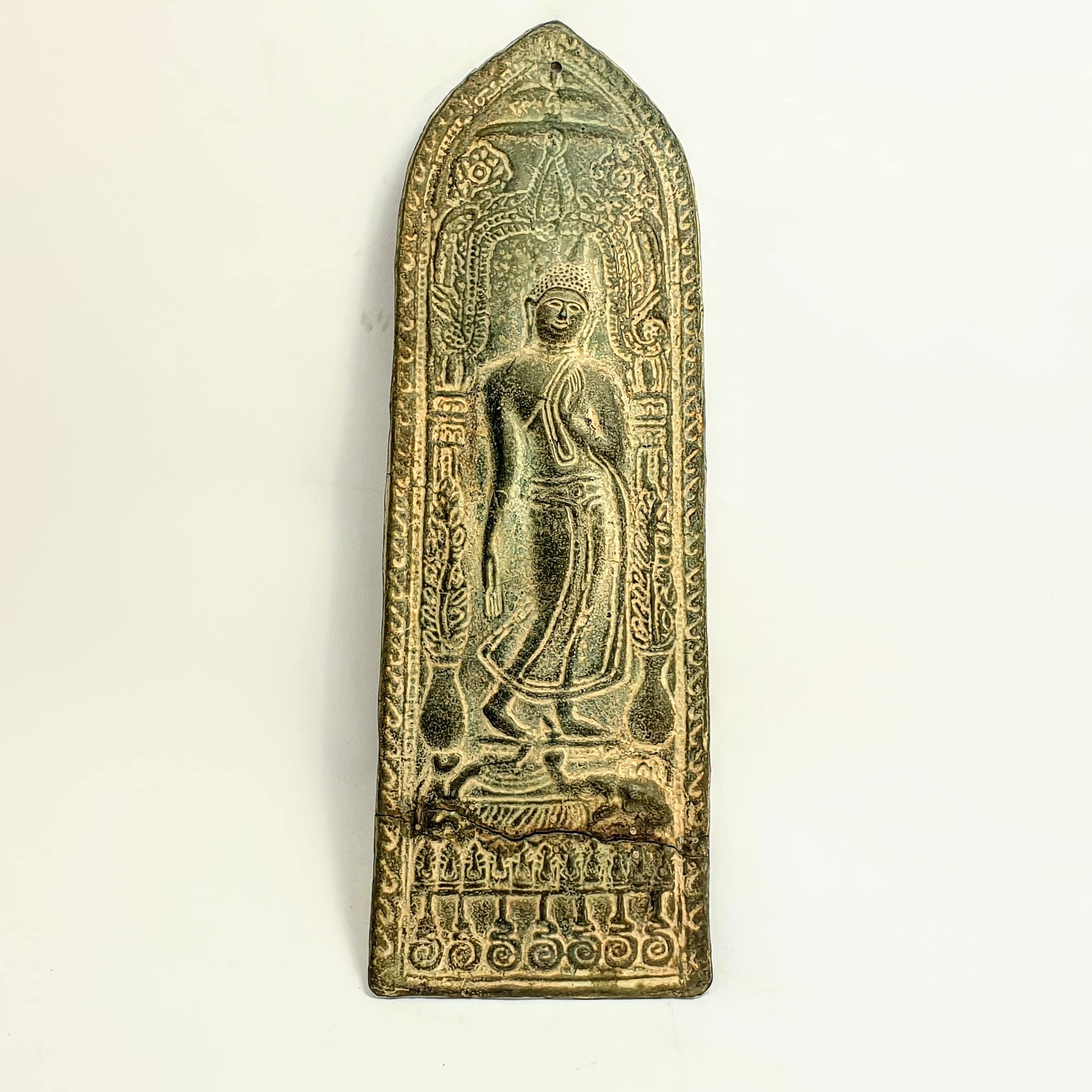 Rzadka buddyjska tablica wotywna z okresu Ayutthaya (styl Sukhothai) – autentyczny artefakt kultu religijnego, idealny jako amulet lub obiekt kolekcjonerski. Tablica uszkodzon i połączona blaszką i nitami .