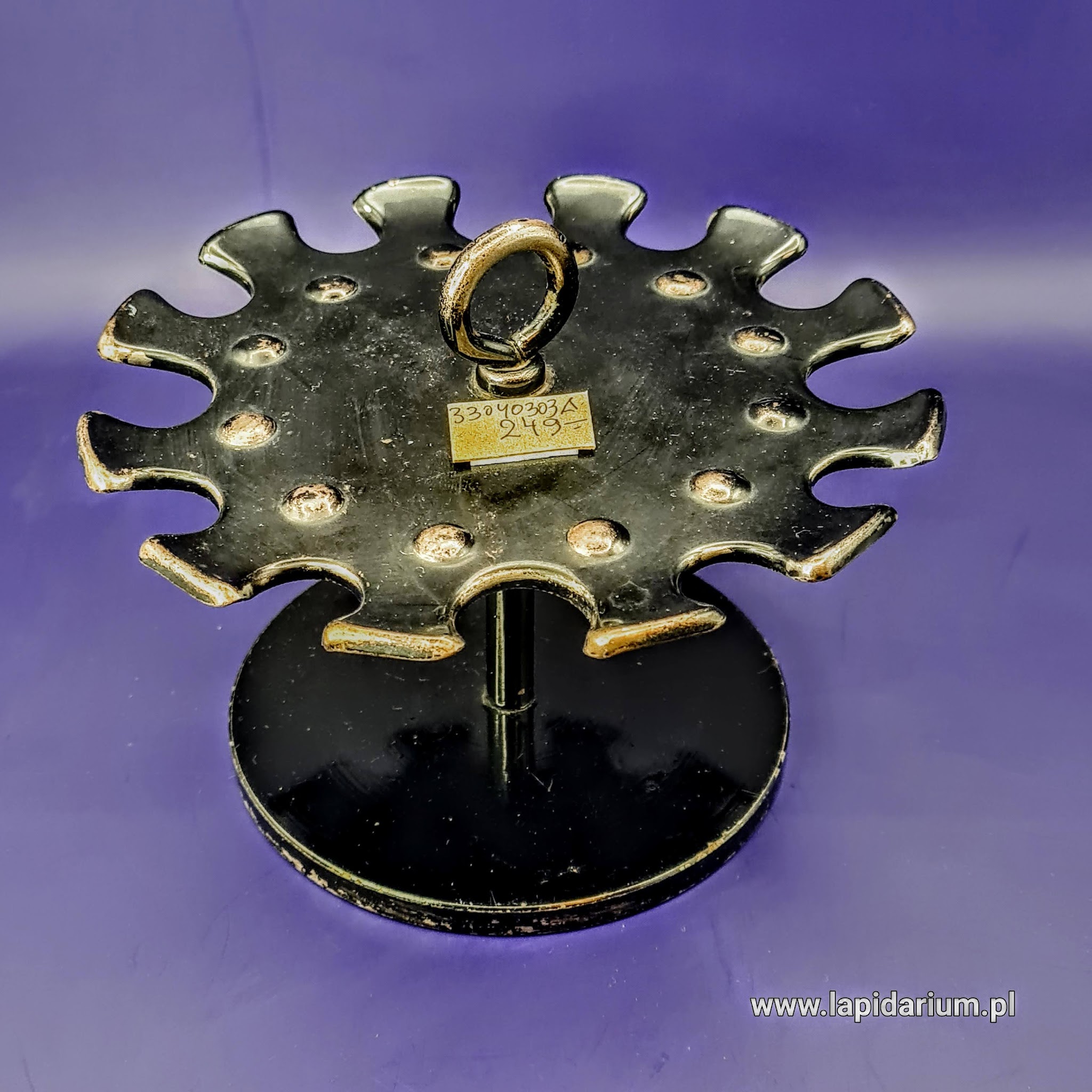 Uchwyt wykonany jest z trwałego metalu, najprawdopodobniej ze stali lub mosiądzu, i zachował się w solidnym stanie, świadczącym o jego użytkowaniu. Jego konstrukcja jest funkcjonalna i charakterystyczna dla niemieckich przyborów biurowych z lat 30. i 40. XX wieku. Przedmiot ten służył do pewnego i wygodnego trzymania pieczęci lub stempli urzędowych, którymi opatrywano dokumenty, zarządzenia i rozkazy wydawane przez niemiecką administrację okupacyjną.