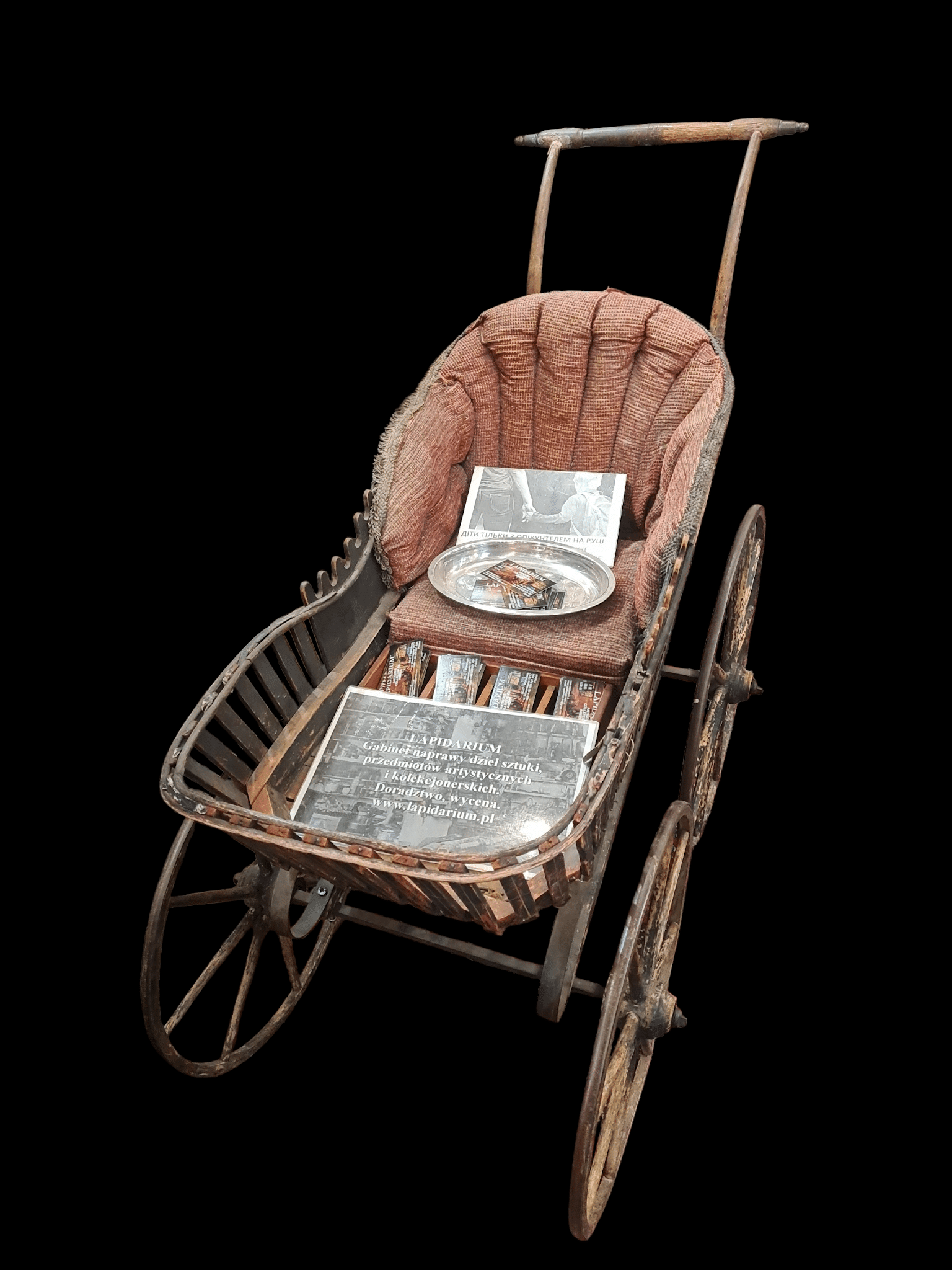 Ze względu na wiek przedmiotu, traktujemy go jako obiekt kolekcjonersko-dekoracyjny. Stan zachowania jest typowy dla przedmiotu o ponad 100-letniej historii, co nadaje mu autentyczny, szlachetny charakter. To więcej niż wózek – to opowieść o dzieciństwie, rodzinie i codziennym życiu w XIX-wiecznej Anglii.