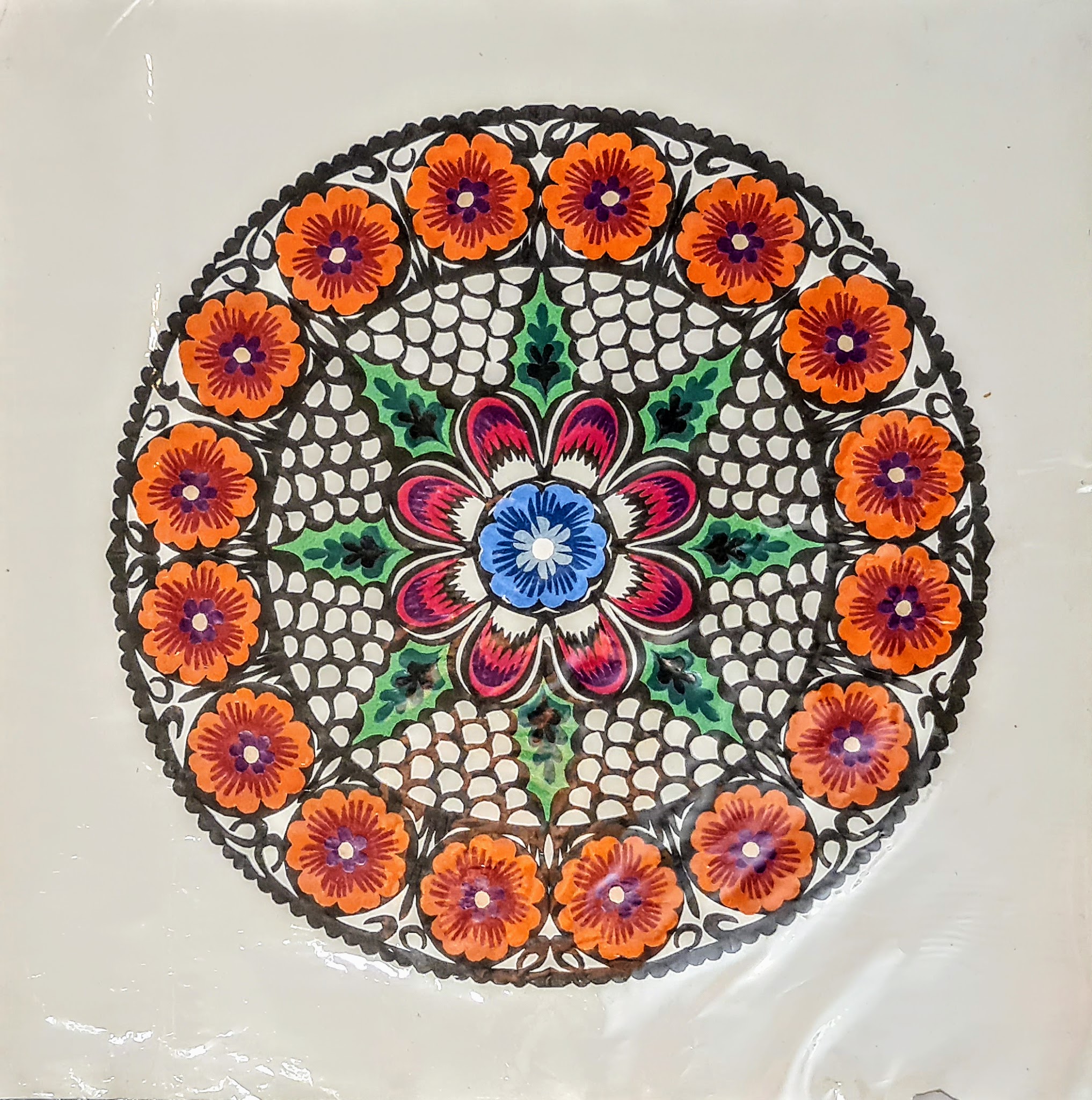 Zapraszamy do odkrycia autentycznego fragmentu polskiego folkloru! Niniejsza wycinanka łowicka z XX wieku to wyjątkowy przykład tradycyjnej sztuki ludowej, która przez dziesięciolecia zdobiła wiejskie chaty regionu łowickiego. Wykonana z barwnego, wielowarstwowego papieru, prezentuje charakterystyczne, symetryczne motywy roślinne i geometryczne, często nazywane „gwiozdami” lub „lelujami”.