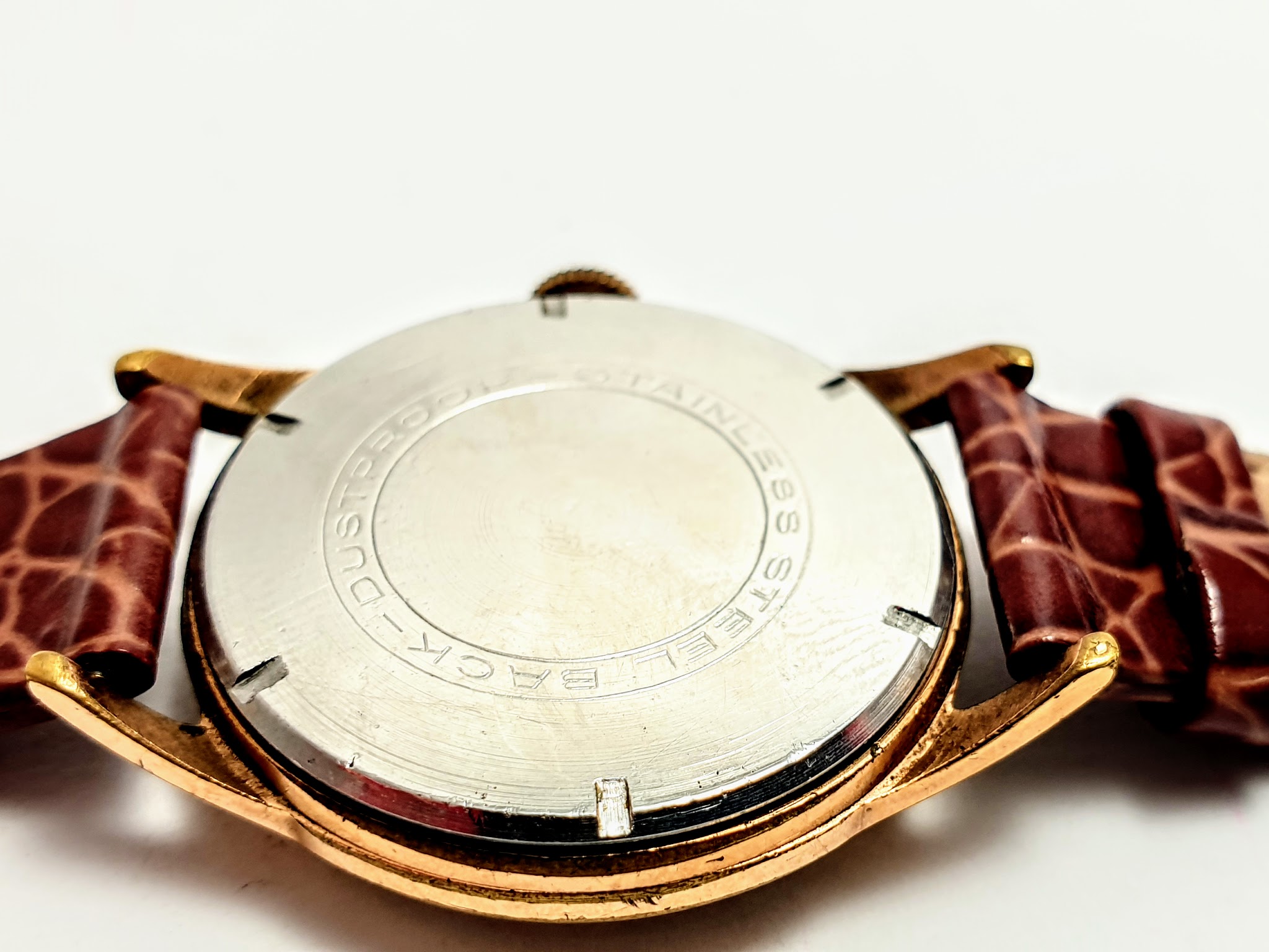 Sercem tego zegarka jest oryginalny, wysokiej klasy mechanizm Jaeger-LeCoultre, który pierwotnie zamknięty był w złotej kopercie. W okresie wojennym, z przyczyn ekonomicznych i praktycznych, częstą praktyką było przekładanie wartościowych mechanizmów do skromniejszych, stalowych lub metalowych kopert. Ta transformacja pozwalała na dalsze użytkowanie precyzyjnego mechanizmu, jednocześnie dyskretnie ukrywając jego prawdziwą wartość. Taka właśnie historia stoi za tym egzemplarzem.