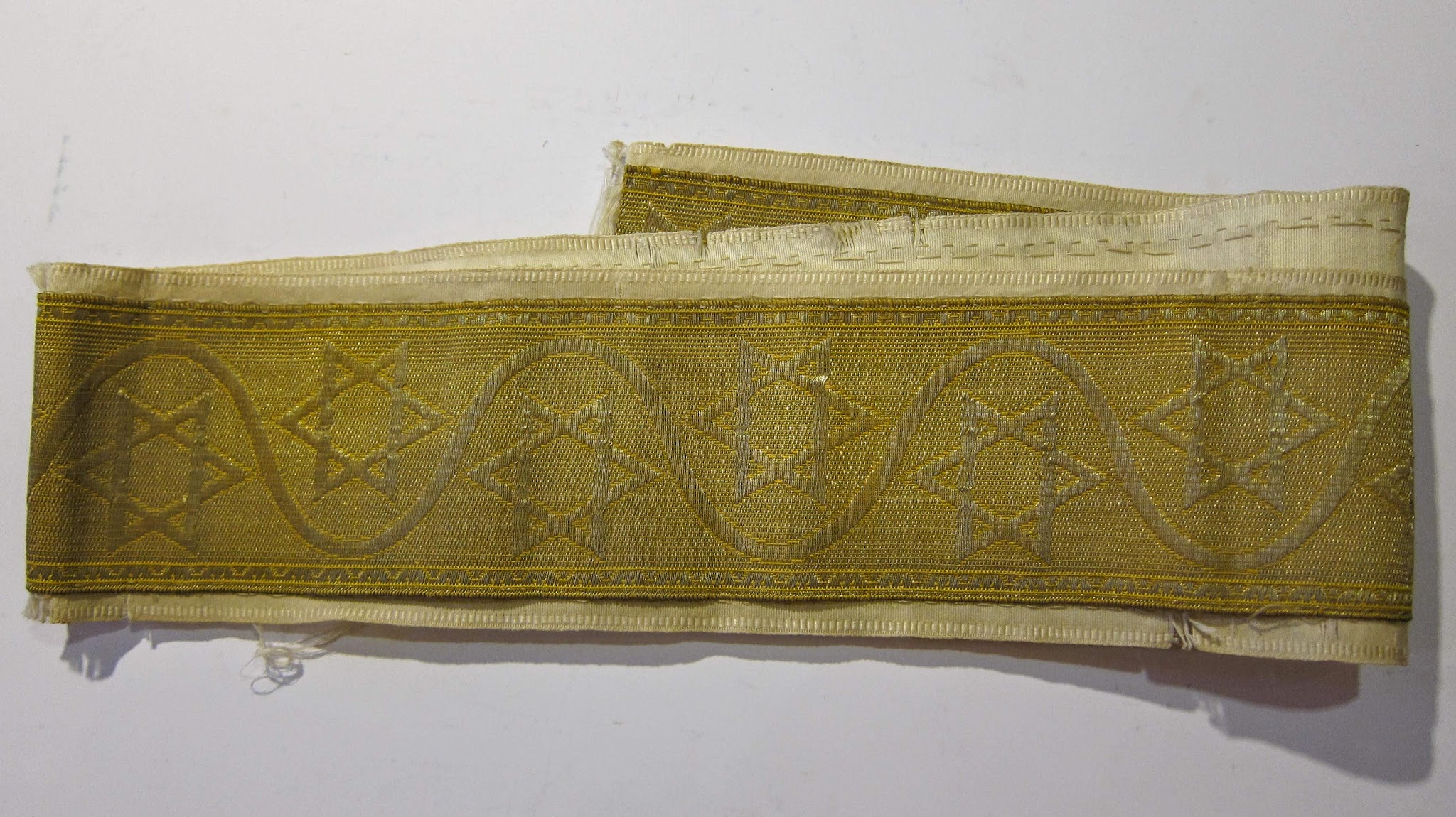 POST w budowie …..XIX-wieczna żydowska szarfa modlitewna z ręcznym wyszyciem złotem w motyw gwiazdy Dawida. Unikatowy zabytek judaistyczny z Polski.